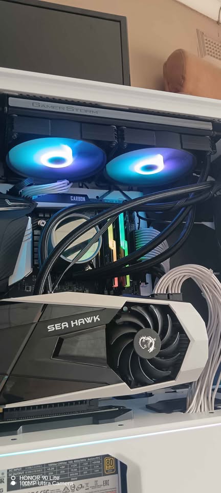 Execellent condition gamer pc Hardly used MSI Seahawk RTX 3080 10GB GPU Intel Core I7 9700K 3.60Ghz CPU MSI mpg Z390 Gaming Pro Carbon MB Gamerstorm CPU Liquid Cooler Super Flower 850watt Gold Plus PSU G.Skill 32GB RGB DDR4 Ram Phanteks RGB Tempered Glass Case. Samsung Evo 1TB Nvme 2x1TB Western Digital HDD Windows 11 Professional Microsoft Office 2025 Pro Plus
