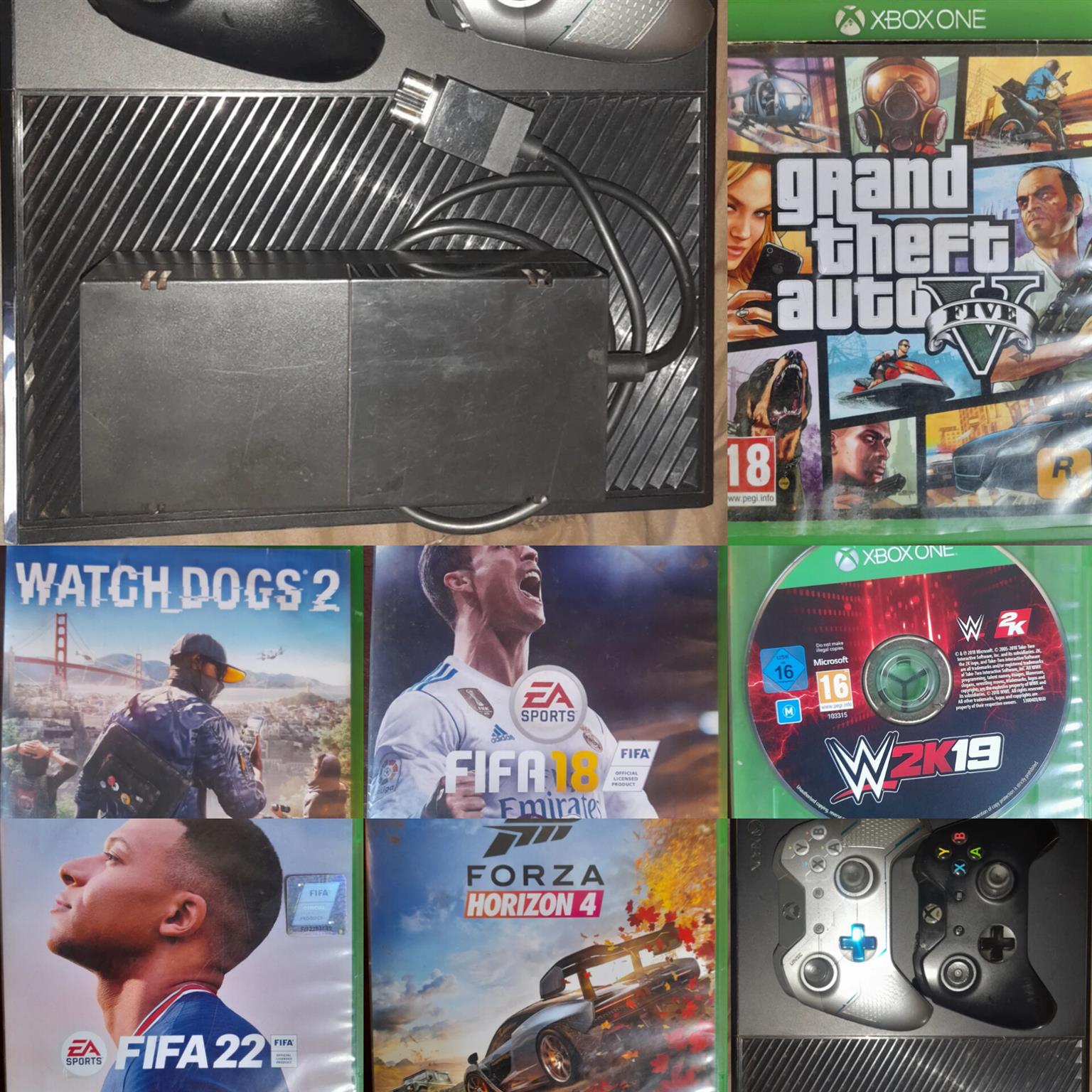 Xbox one with 2 controllers and 6 games, still in good condition I don't play it anymore and the price include delivery fee