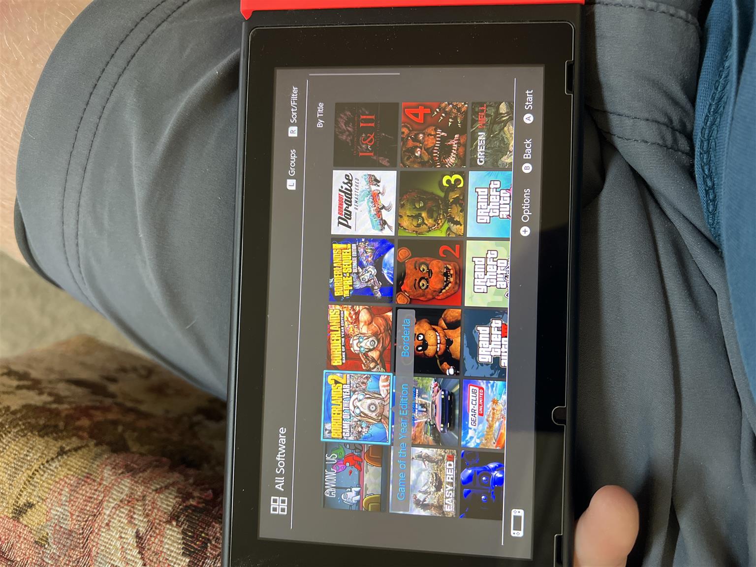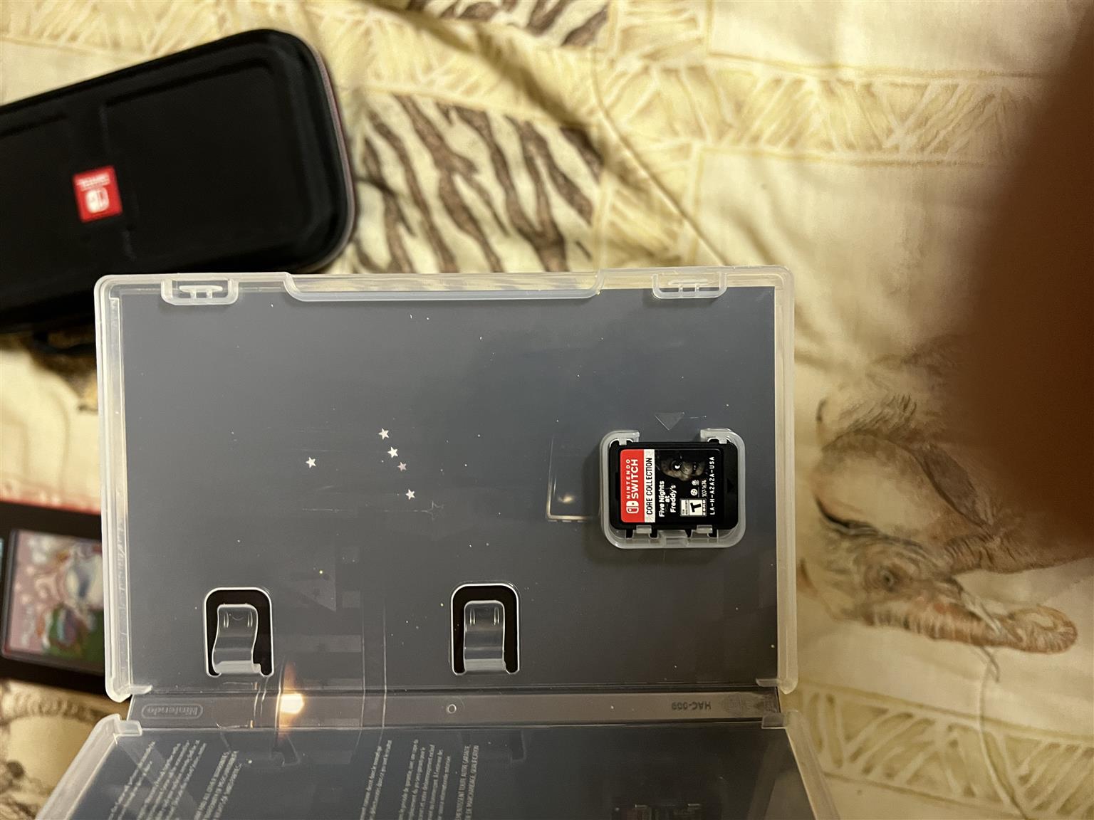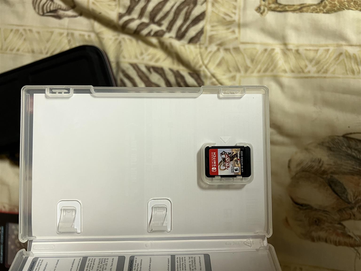Nintendo switch with many games and accessories for sale. 31 games included, some already downloaded onto console. 3 memory cards included. Travel case, charging dock with hdmi cable and charger cable. Extra controllers and screen guard included