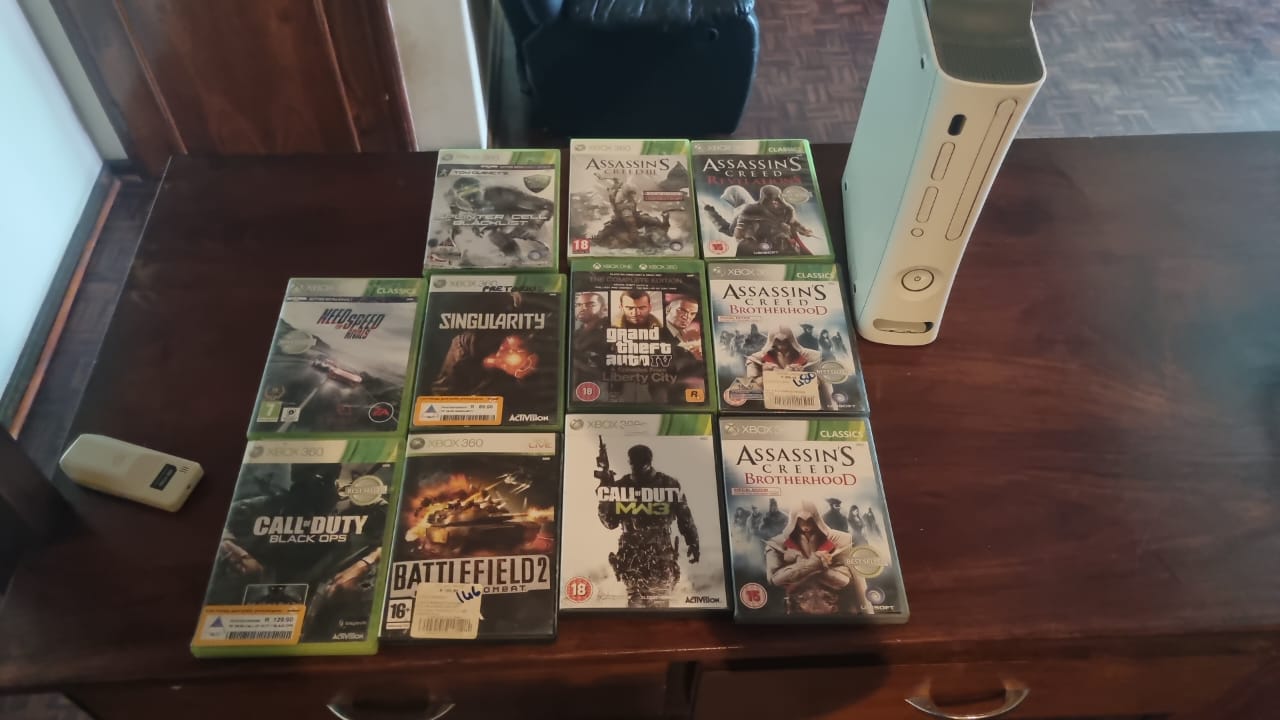 Xbox 360 with a few games but no controllers my controllers packed up but my console is still working 100% I clean it out monthly its really taken care of but decided to upgrade to Xbox S