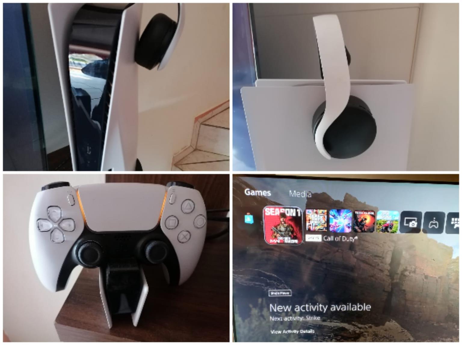 Ps5 1Terrabite with 1 controller and Ps5 headsets as well as remote control charger holder. There are 5 games installed, Call of duty, Fortnite, GTA 5, tomb raider and farming 22. With all games it's R18 000, without games it's R15 000.