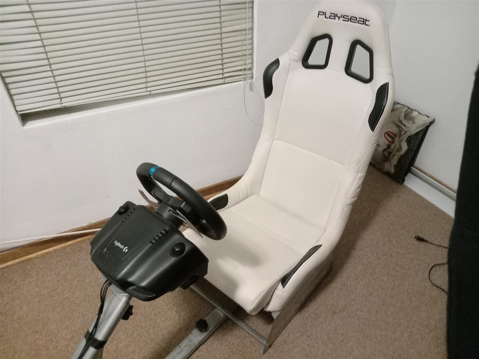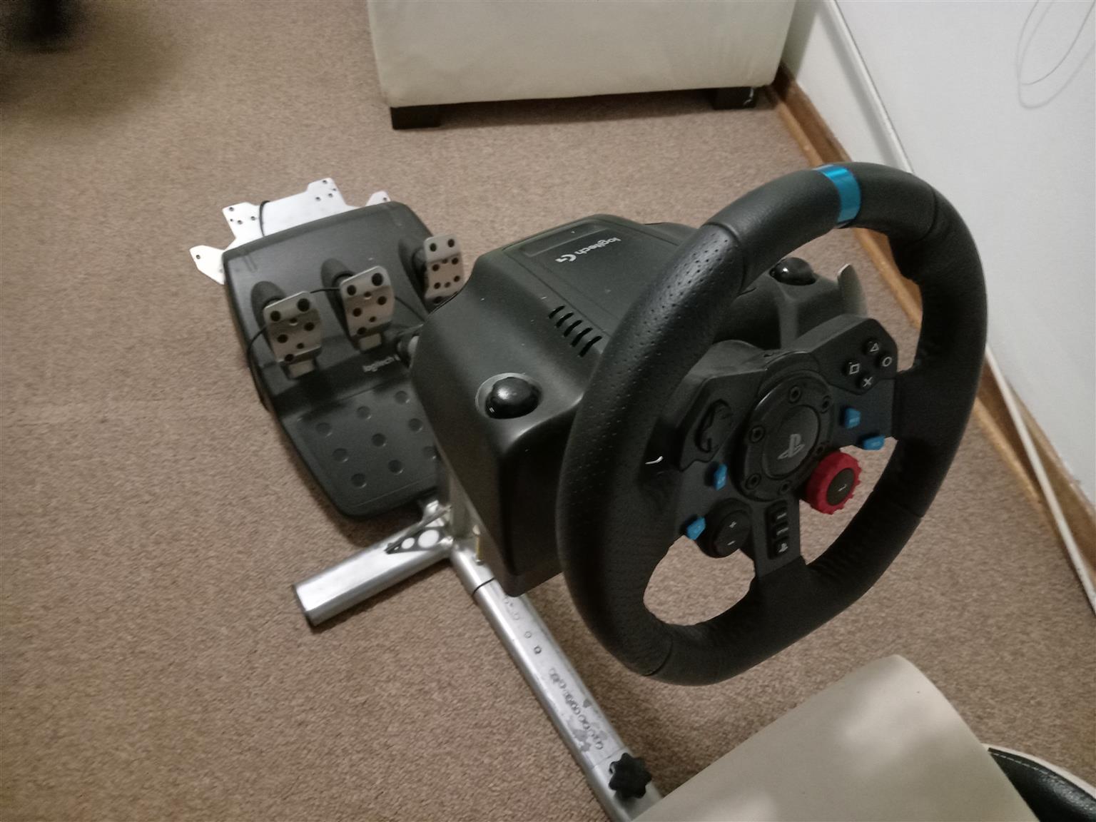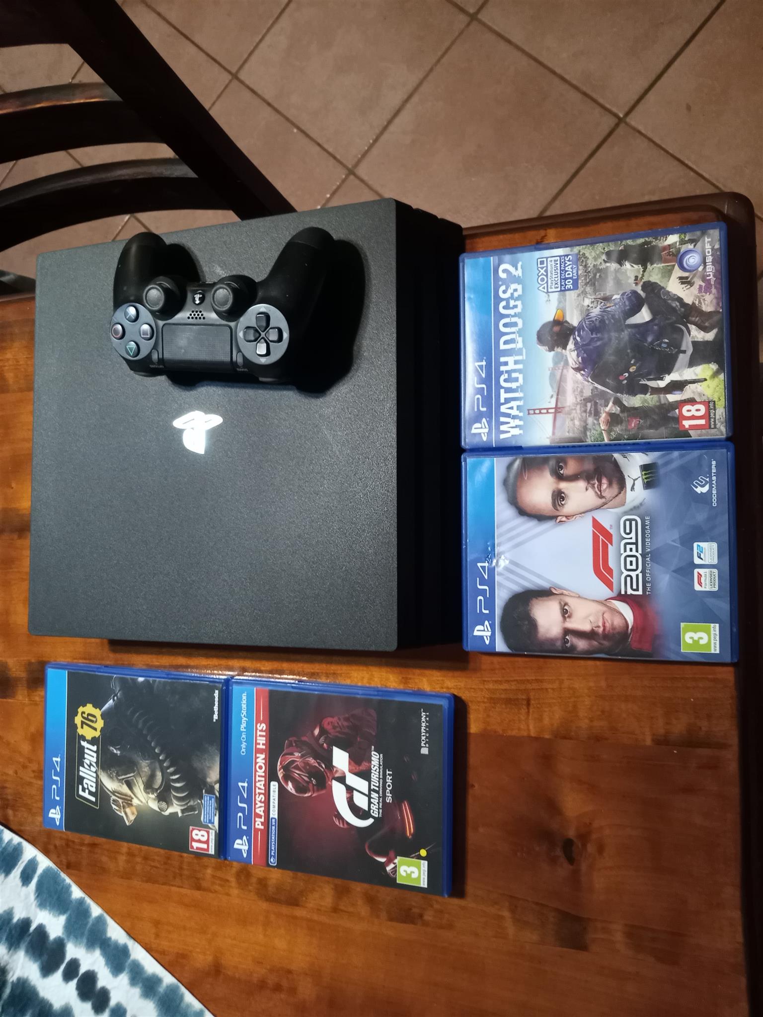 PS4 Pro 1TB with a logitech G29 stering wheel with pedals mounted on a adjustable playseat with 4 games.