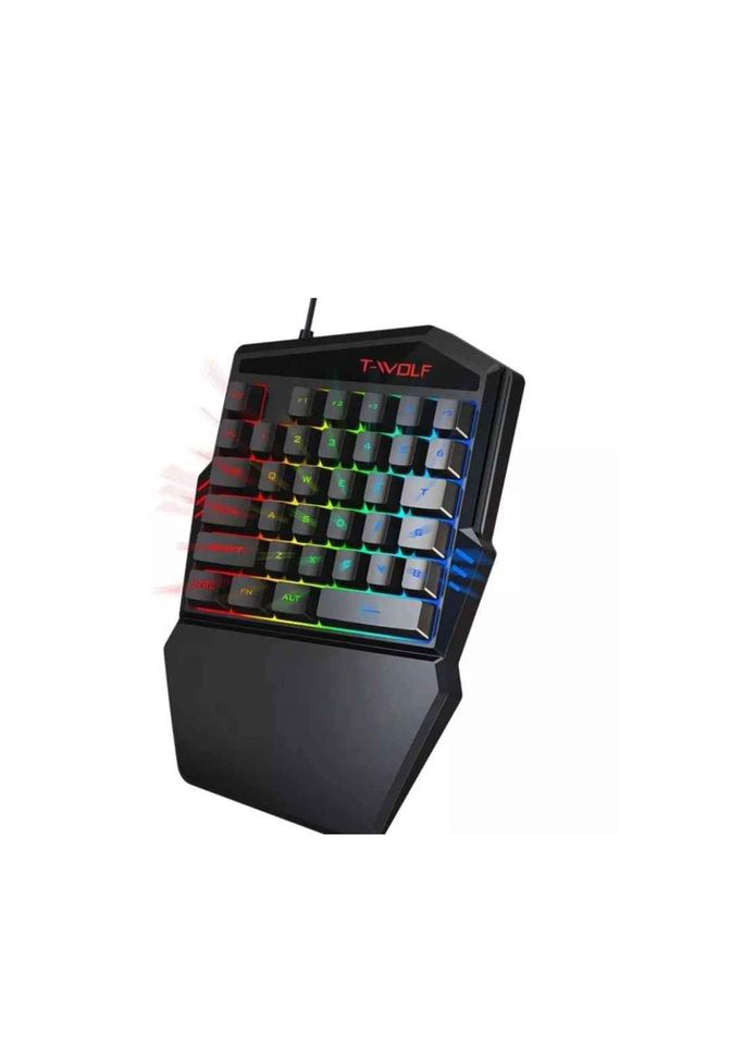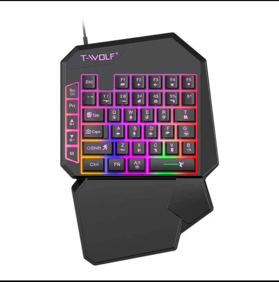 Experience a new level of gaming precision and comfort with the T-Wolf one-handed keyboard. This compact keyboard features 46 carefully placed keys, ensuring optimal finger placement and rapid keystrokes. The ergonomic design minimizes hand strain, allowing for extended gaming sessions without fatigue. With vibrant RGB backlighting and customizable macros, you can tailor your gaming experience to your exact preferences