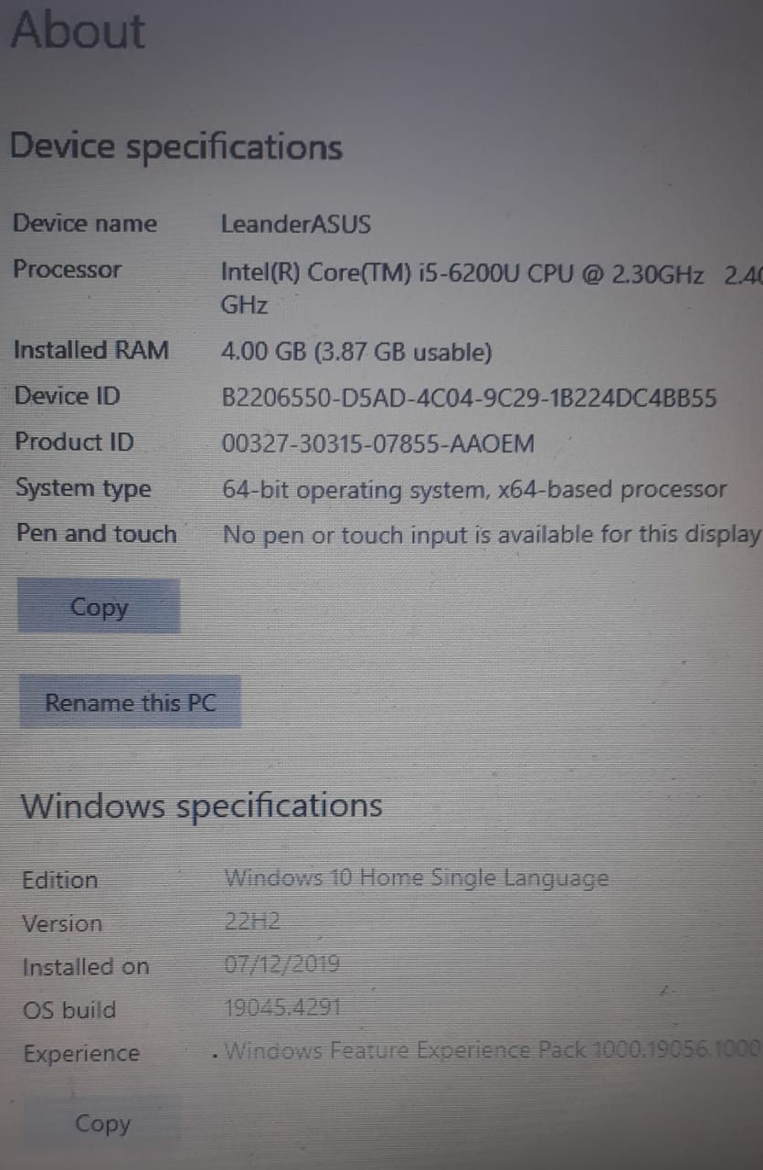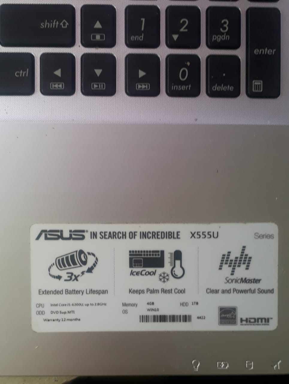 Selling my ASUS i5 Laptop. Works 100%, only fault, works on charger, battery finished.