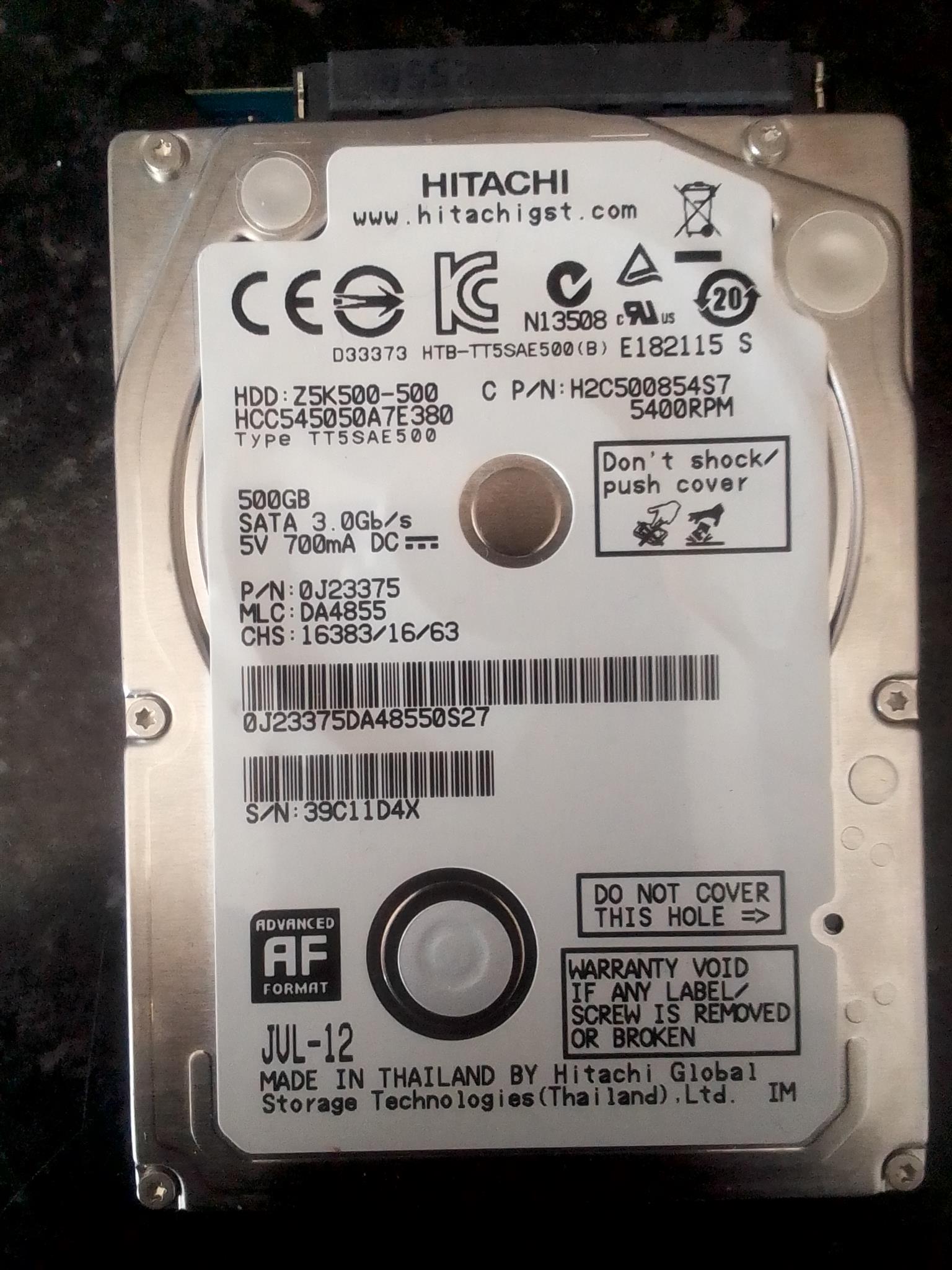 Hitachi 500GB hard drive type TT5SAE500 5400Rpm