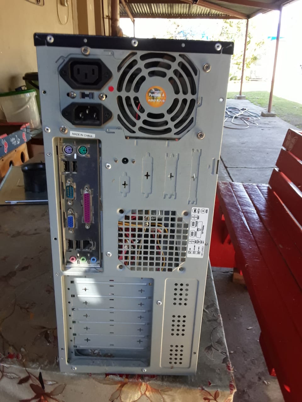 Pc box. Windows xp, 80gig hhd, 2.8 amd cpu and ram +- 1gig. AGP motherboard pc working 100%