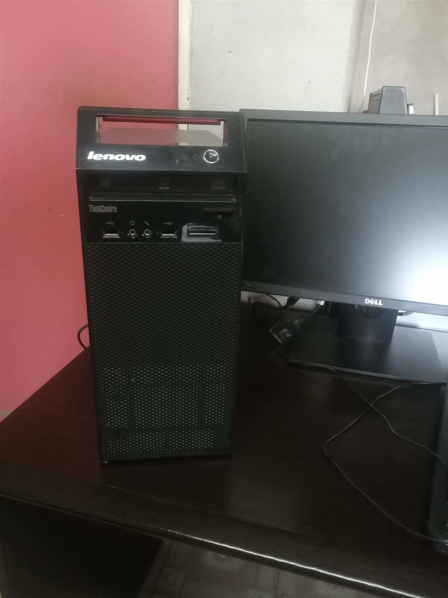 Lenovo Think Centre PC. i3 processor, 4GB RAM, 2TB Hard Drive, monitor, mouse and keyboard.