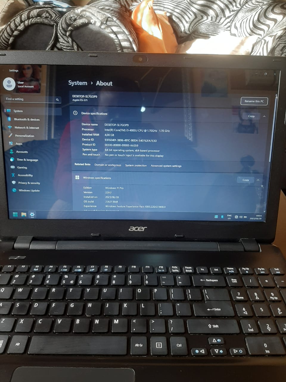 Acer Aspire Core i3, 4th Gen, 128SSD, 4GB Ram, Windows 11, 64-bit Operating System. Battery lasts up to 6hrs and the laptop is super fast. Immaculate condition with a stylish slim design