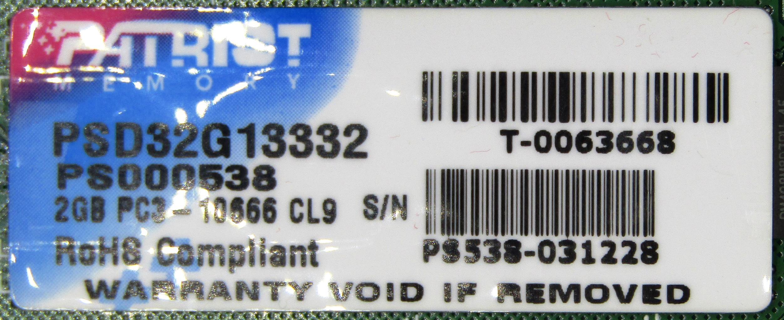 2GB DDR3 Patriot RAM Module