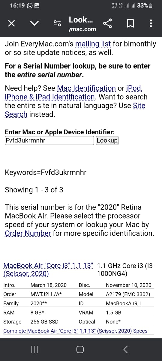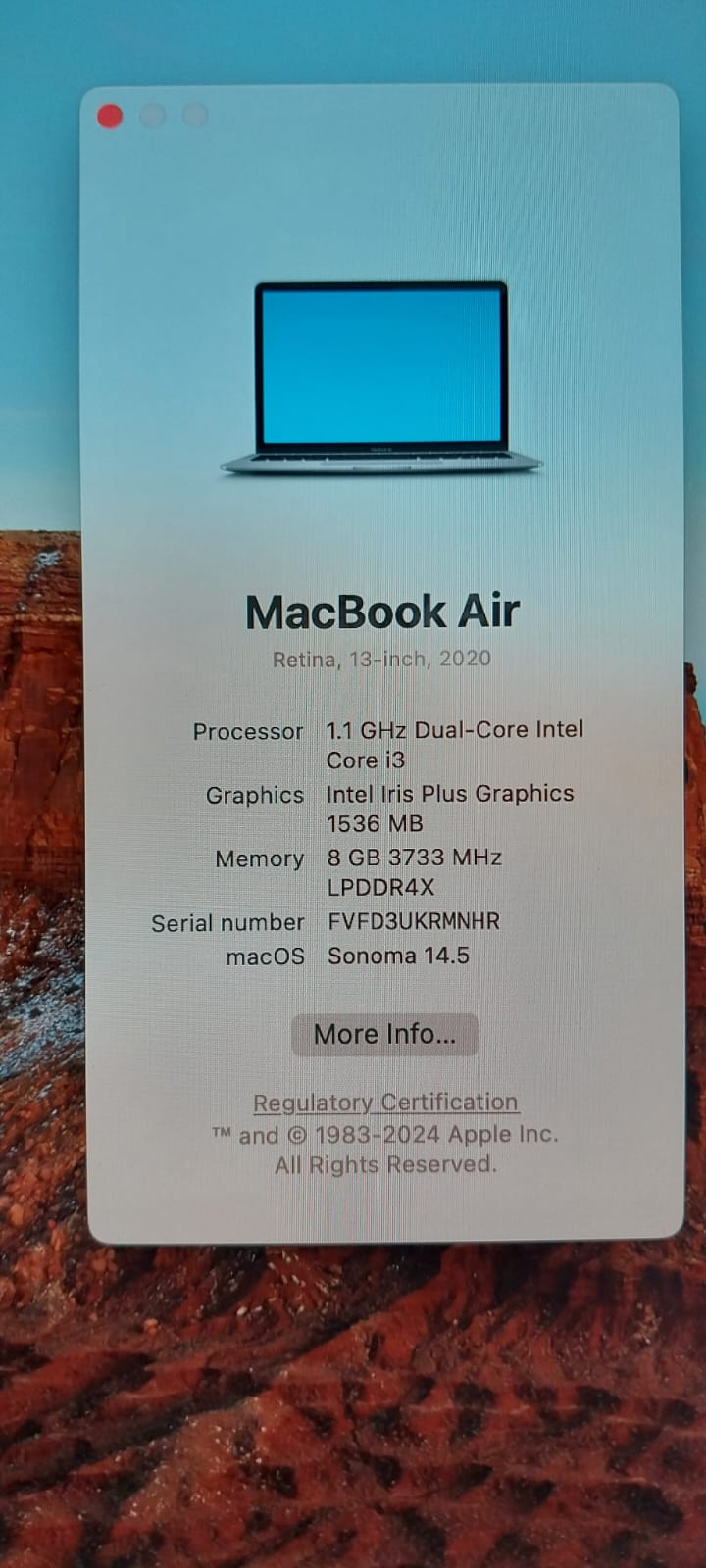 Apple Macbook Air Retina 13" 2020 comes with charger in very good condition