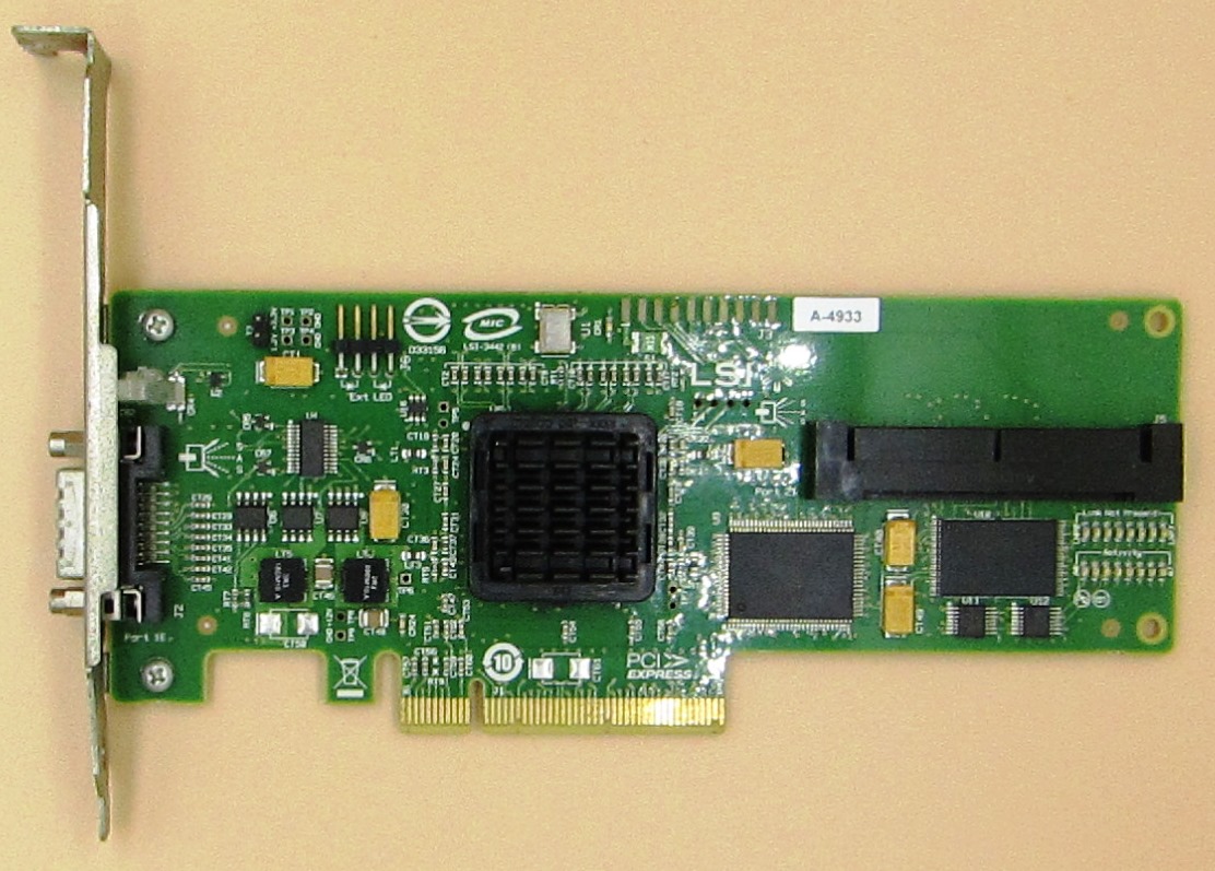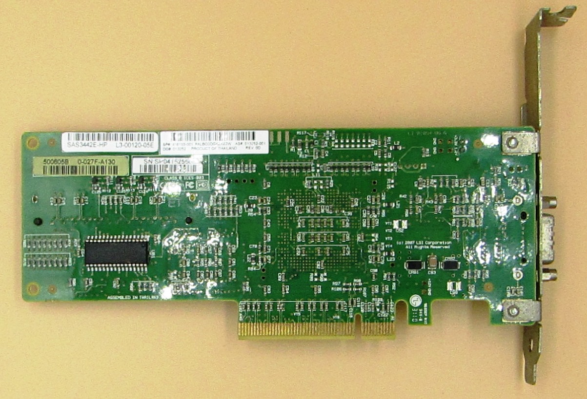 Hewlett Packard Enterprise SC44Ge SAS Host Bus Adapter (HBA) - PCIe x8 (2.5GB/sec bandwidth) bus, Eight 3Gbps SAS physical links (supports both a 1 x 4 internal connection and a 1 x 4 external connection) supporting up to two simultaneous x4 Wide SAS Ports, and RAID 0 and 1 support