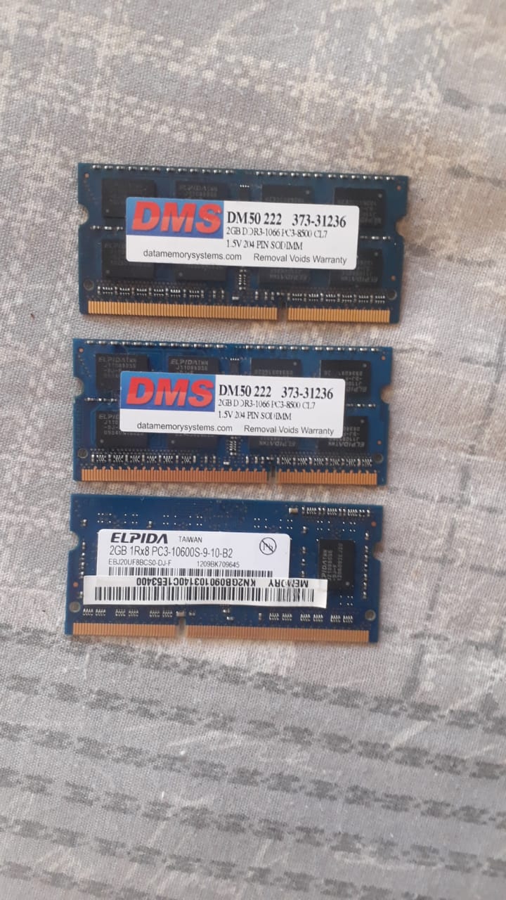 Laptop Memory x 3 2 GB Pieces and in Excellent condition and R250 is per piece negCity and Suburb - Northmead in Benoni
