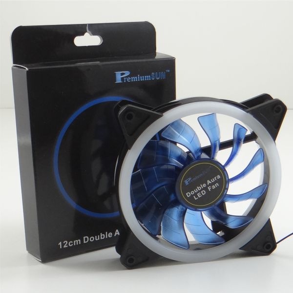 The Premiumsun double aura 12 cm LED case fans features an integral type 11 transparent blue blades with better light absorbing effect. The double aura LED lights forms a charming aura and creates a visual feast for the case. This fan use a 4 pin interface in line with the current game case style.