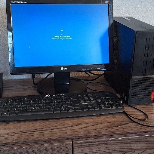 Complete PC including wifi dongle, wireless mouse, LG screen is still new, 1 terabyte storage, windows 10 pro, most software installed.