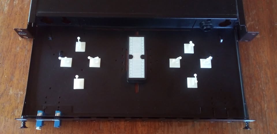 This is a 19″ rack mountable optical fibre sliding panel for indoor use. It is designed for voice, video and data applications including 10 GB Ethernet. Features * 1U, 19″ rack mountable with a 200mm depth * Back cover offers multiple entry/exit options * 2nd Face Plate design facilitates * Recessed mounting for adaptors * More acceptable bending radius at patching field * Adjustable rack mounting brackets