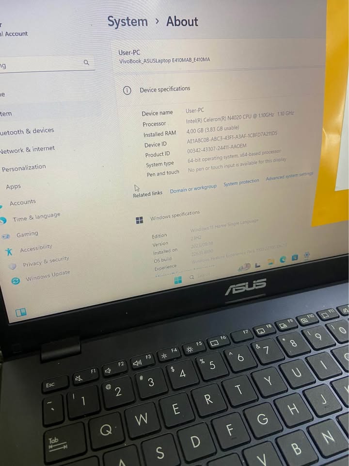Intel Celeron N4020 Processor 1,10 GHz 4 GB RAM Windows 11 256 GB SSD Comes withCharger