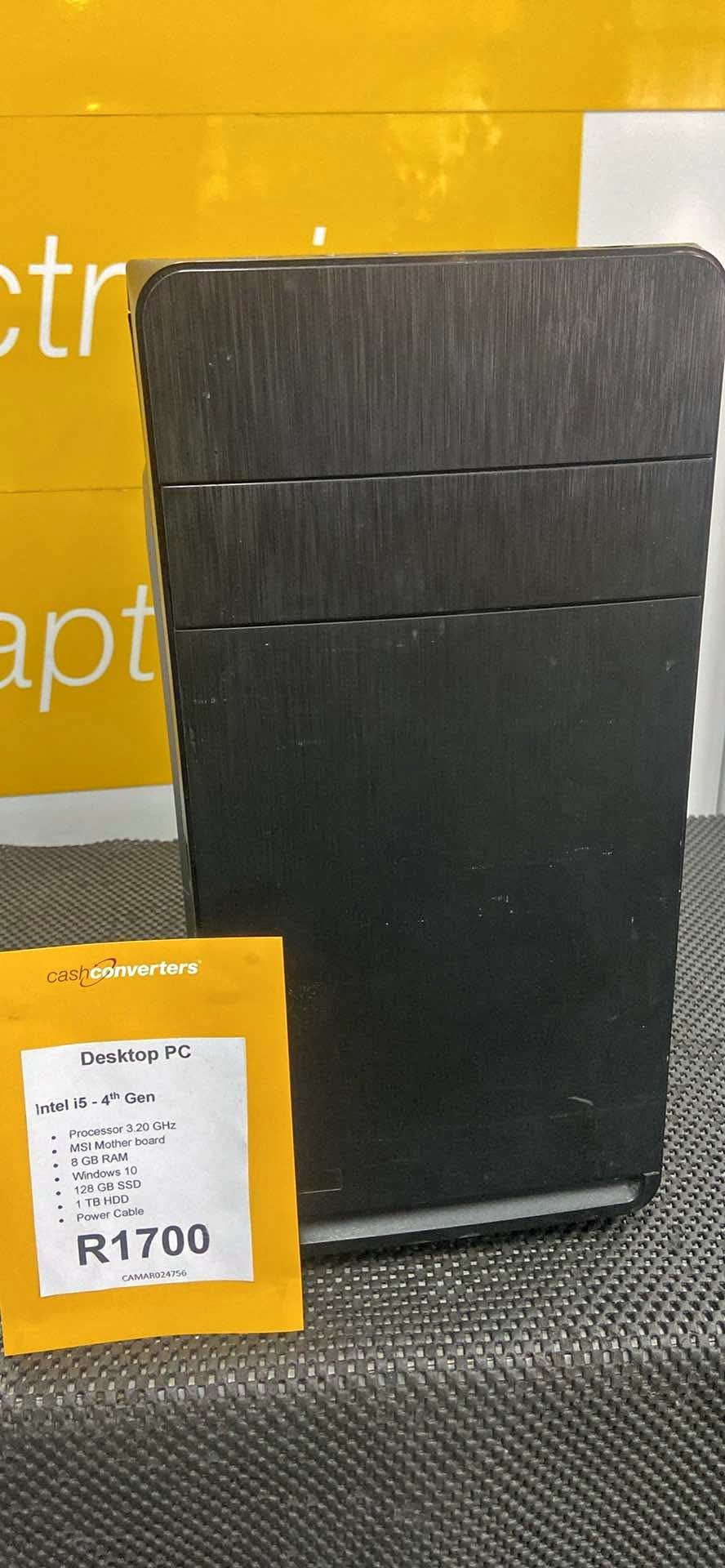 Intel i5-4th Gen • Processor 3.20 GHz • MSI Mother board • 8 GB RAM • Windows 10 • 128 GB SSD 1 TB HDD • Power Cable