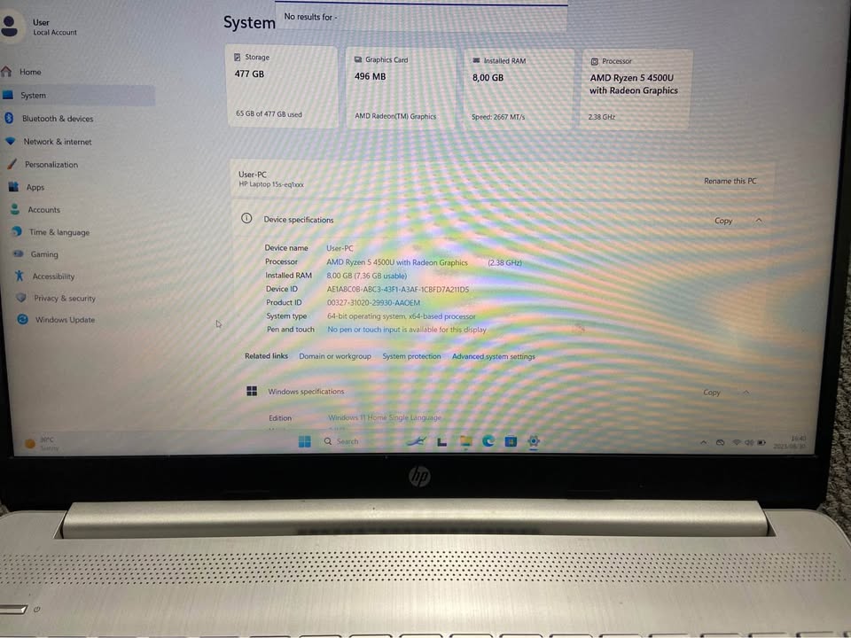 AMD Ryzen 5 4500U with Radeon Graphics • Processor 2.38 GHz 8 GB RAM • Windows 11 • 512 GB SSD Charger