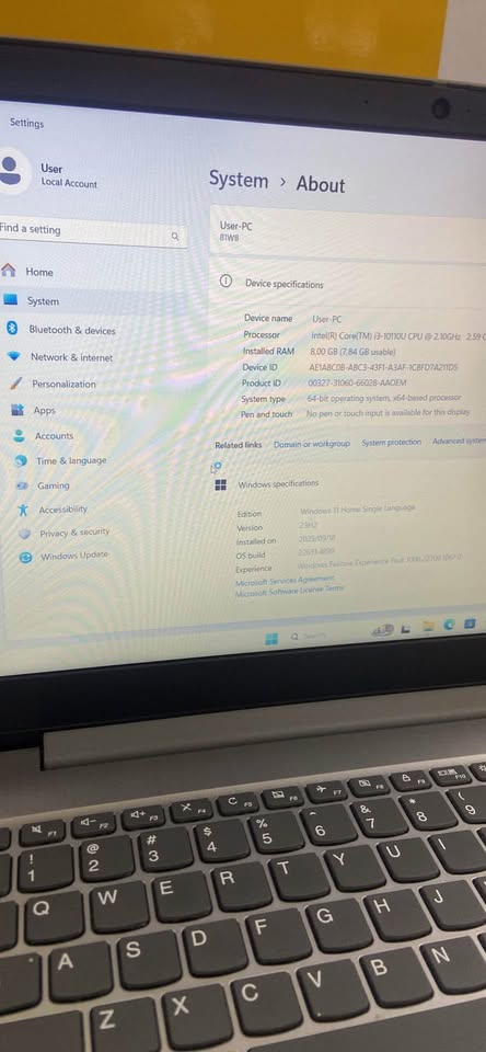 Intel i3-10th Gen • Processor 2.10 GHz • 8 GB RAM • Windows 11 • 1 TB HHD • Charger