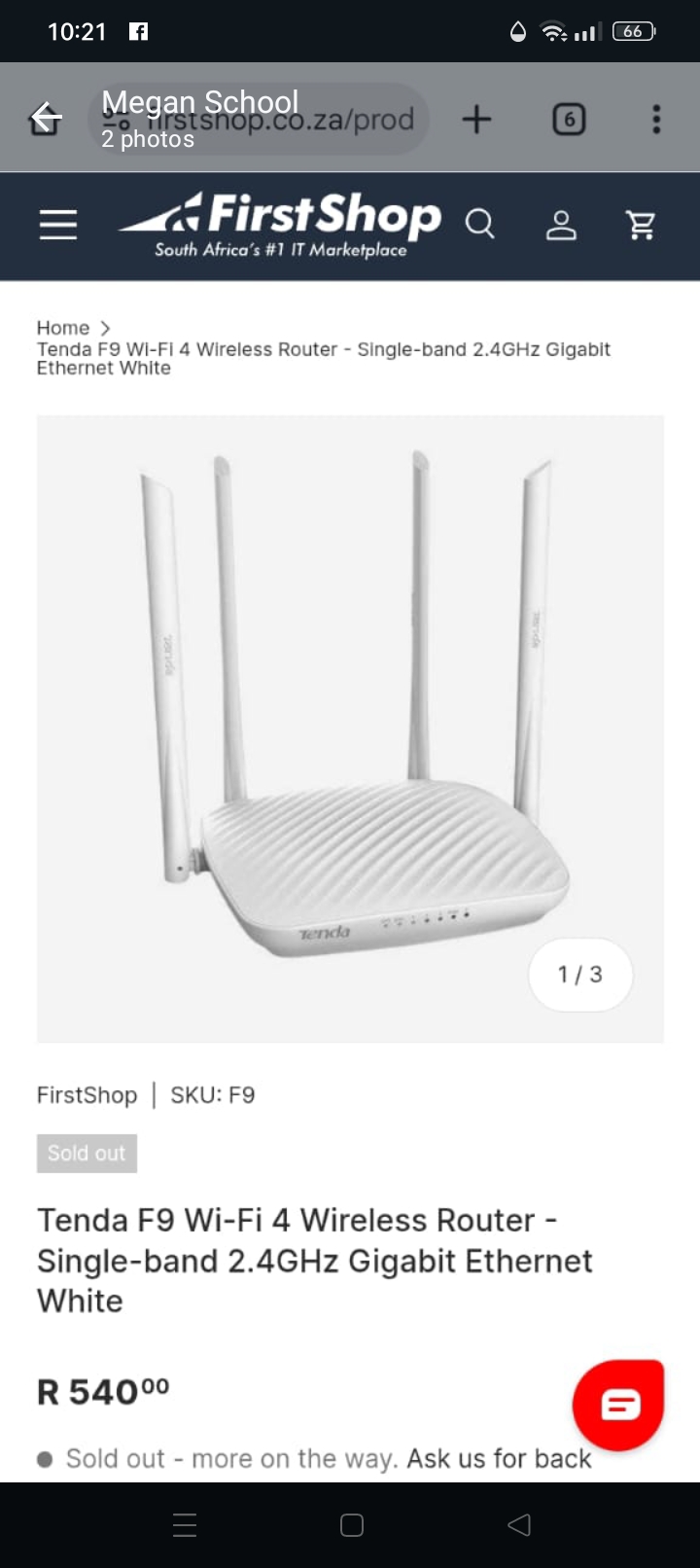 2 x Tenda F9 WiFi 4 Router 2.4 GHz Ethernet. R300 each.