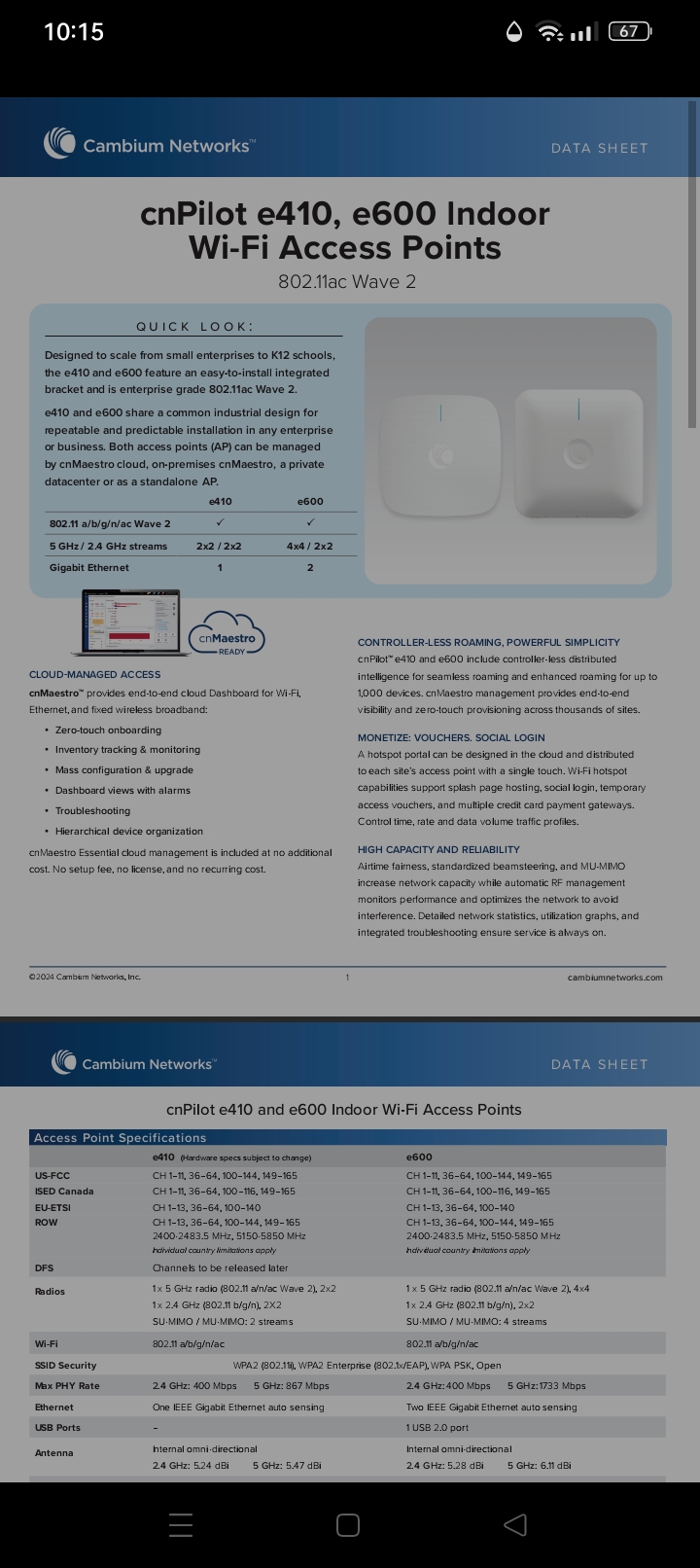 1 x Cambium cnPilot e410 Enterprise Indoor WiFi 5GHz with power supply. Like New. R1000 onco