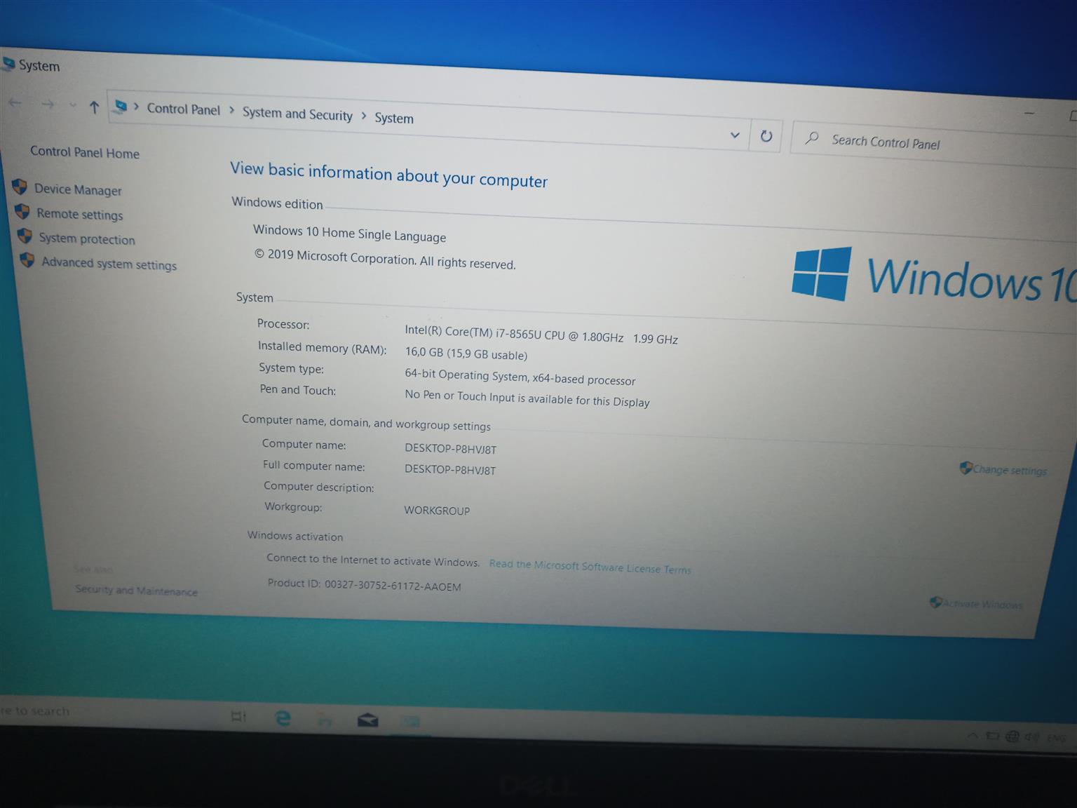 Dell Laptop Intel Core i7 8th Gen