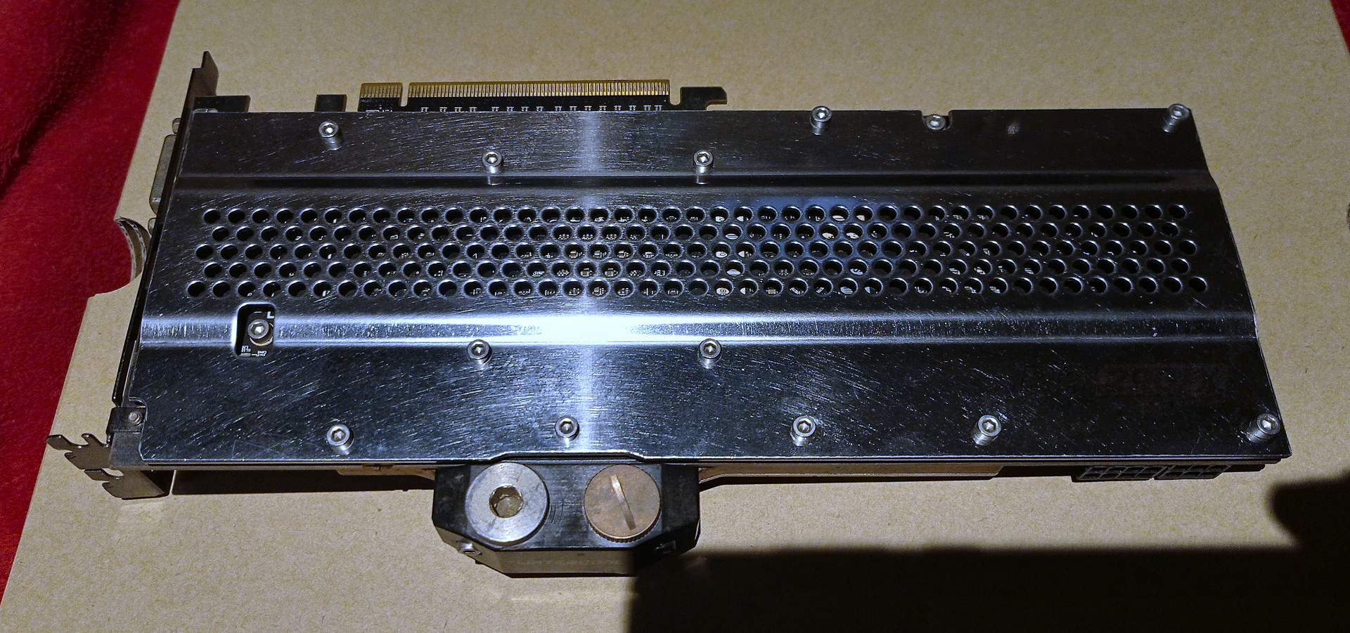 I changed from air cooling to water cooling because the noise of the standard AMD fan was so loud it made it impossible to do any work. I imported the water-block & backplate from Germany.