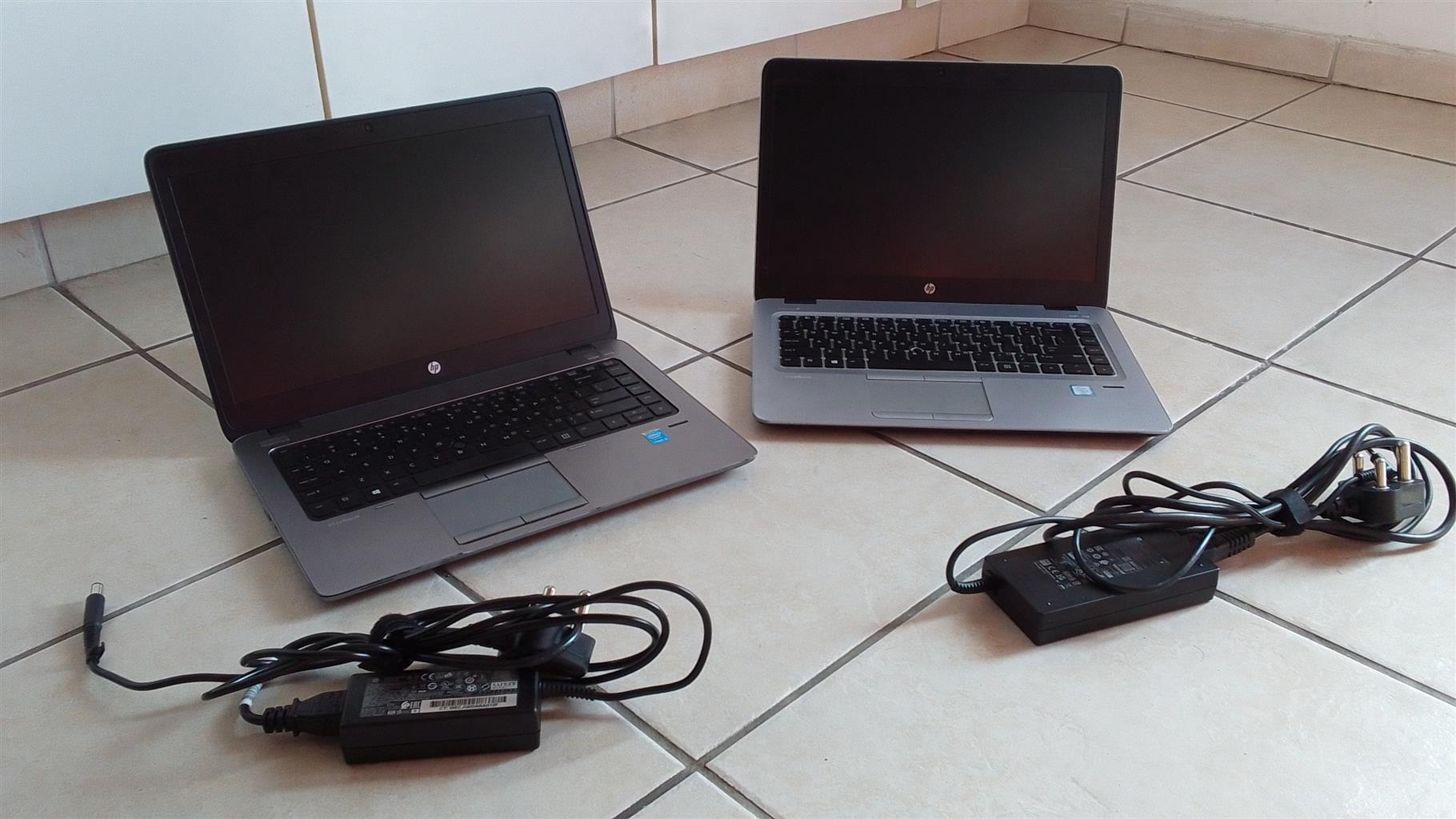 Pre-owned HP Elite book 840 laptops, with chargers. 500Gig memory, 4Gig RAM. In perfect working conditions.