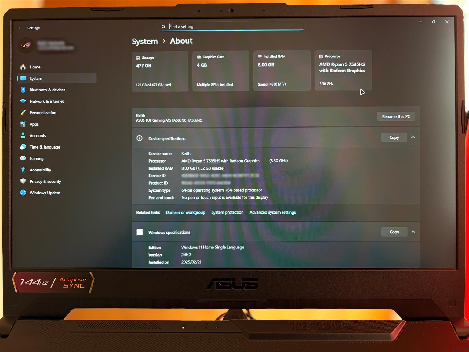 AMD Ryzen™ 5 7535HS | 3.3GHz (up to 4.55 GHz, 6 cores, 12 Threads)