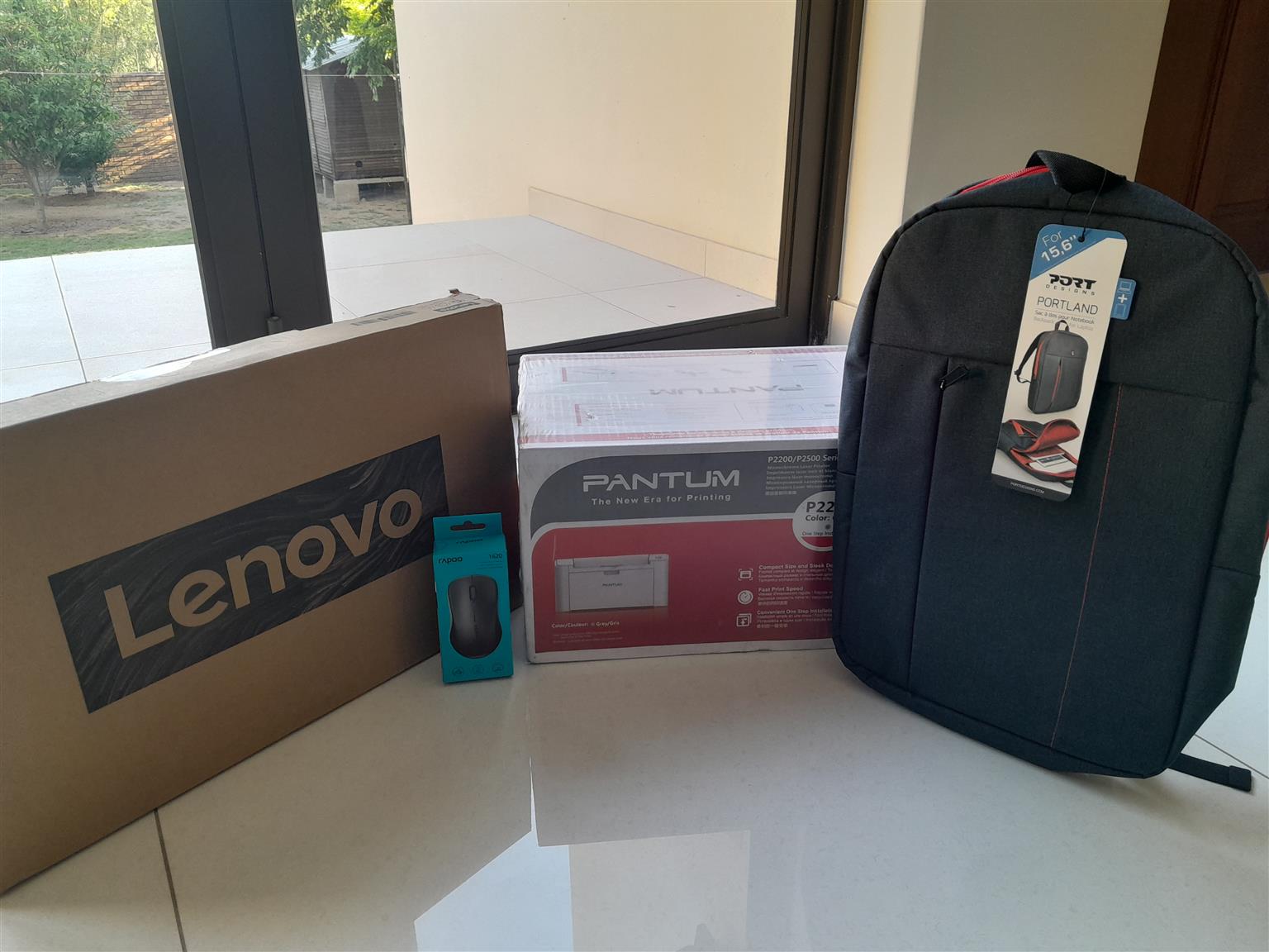 Lenovo IdeaPad i3 1TB storage and 4GB ram (upgradable), PANTUM P2200 series printer, Portland 15.6" laptop bag and a Rapoo 1620 wireless optical mouse all for R6500. Every is still new and seald and the laptops still have the warenty (its all Surplus stock, proof of purchase is available) Please message me to inquire on individual item pricing at 081 797 0229view more