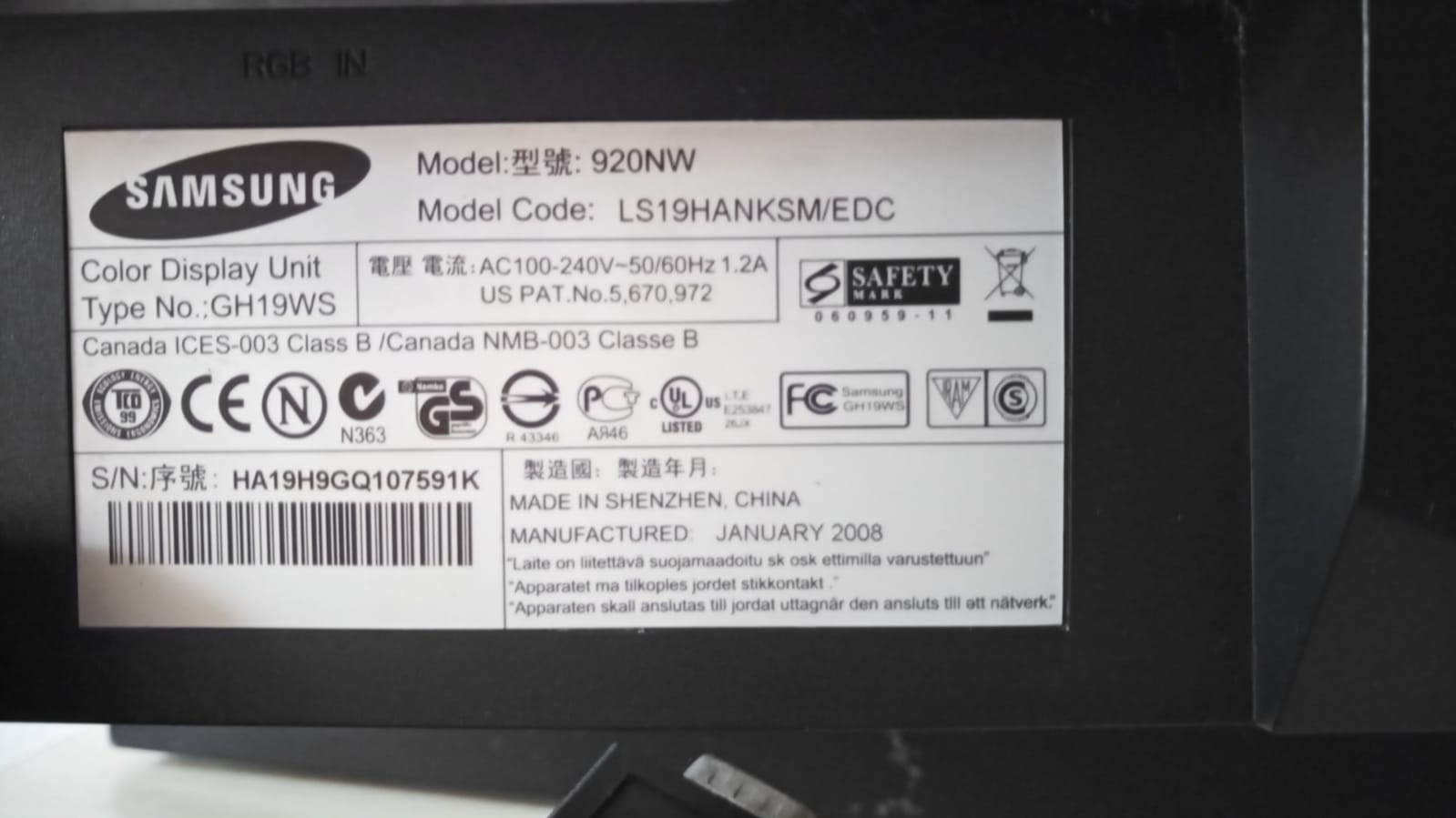 Complete Tower PC with Samsung flatscreen & cables.
