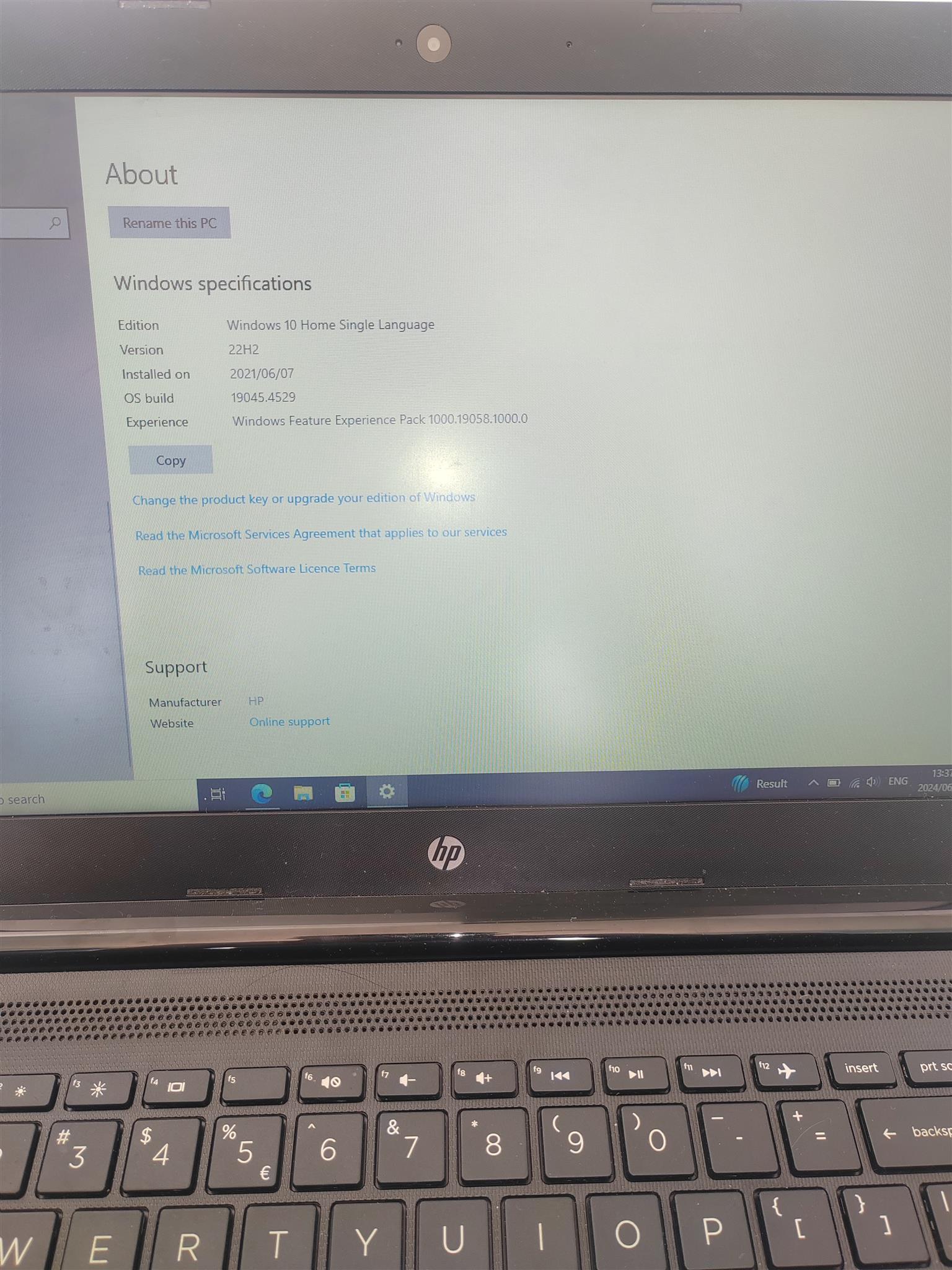 Windows edition :Windows 10 Home Single language version 22H2.