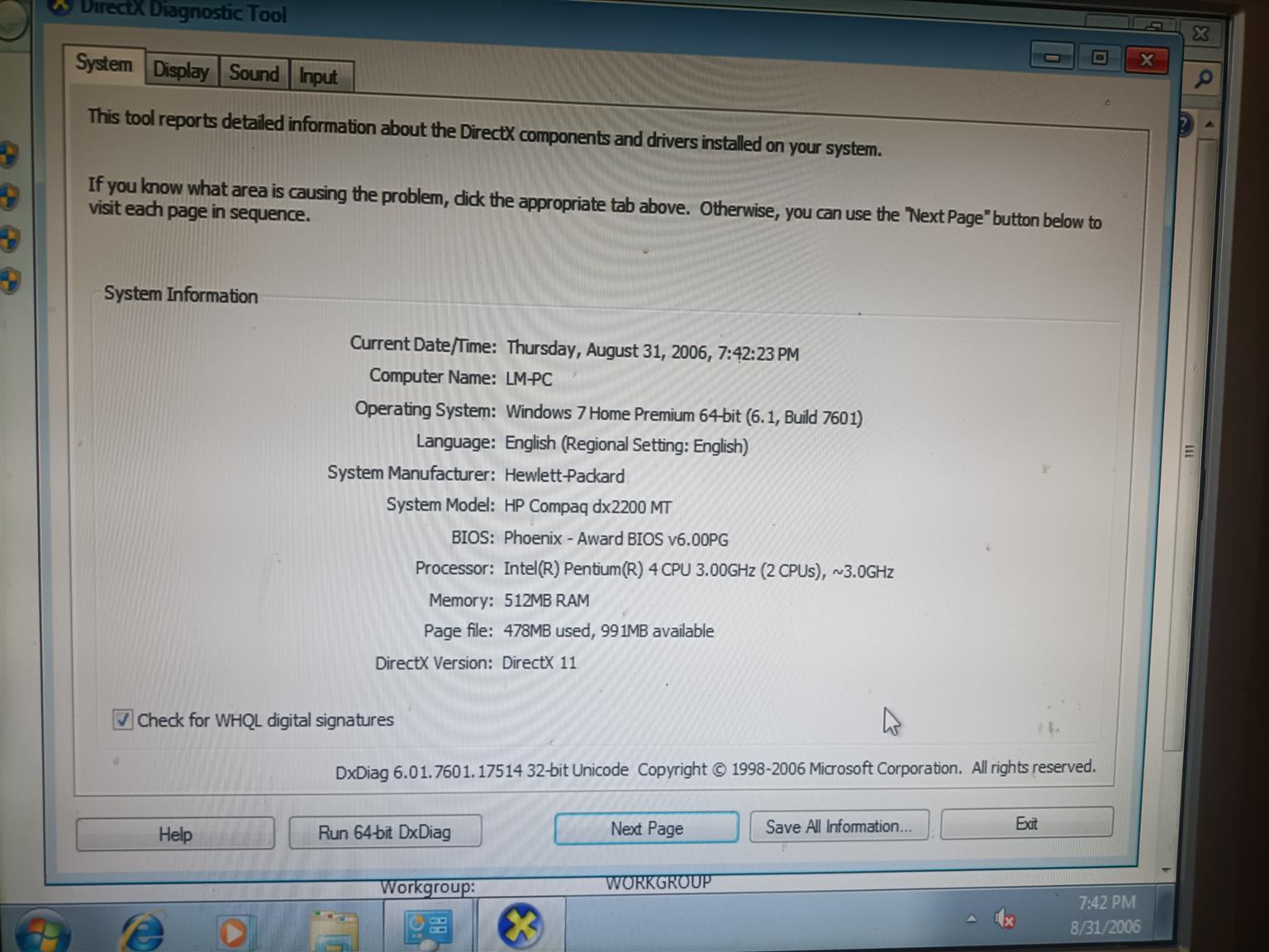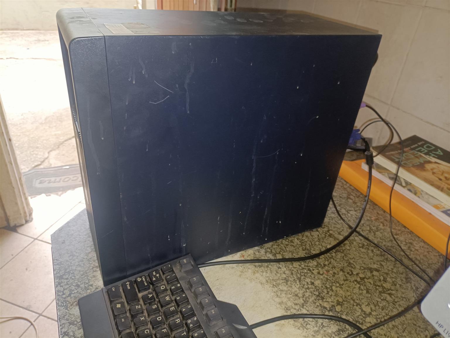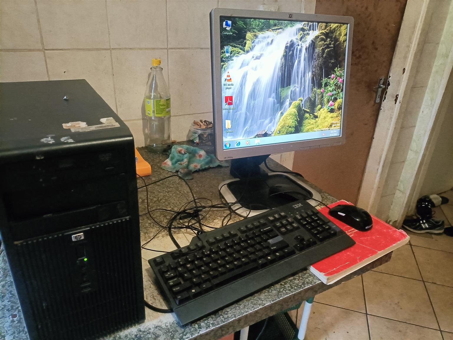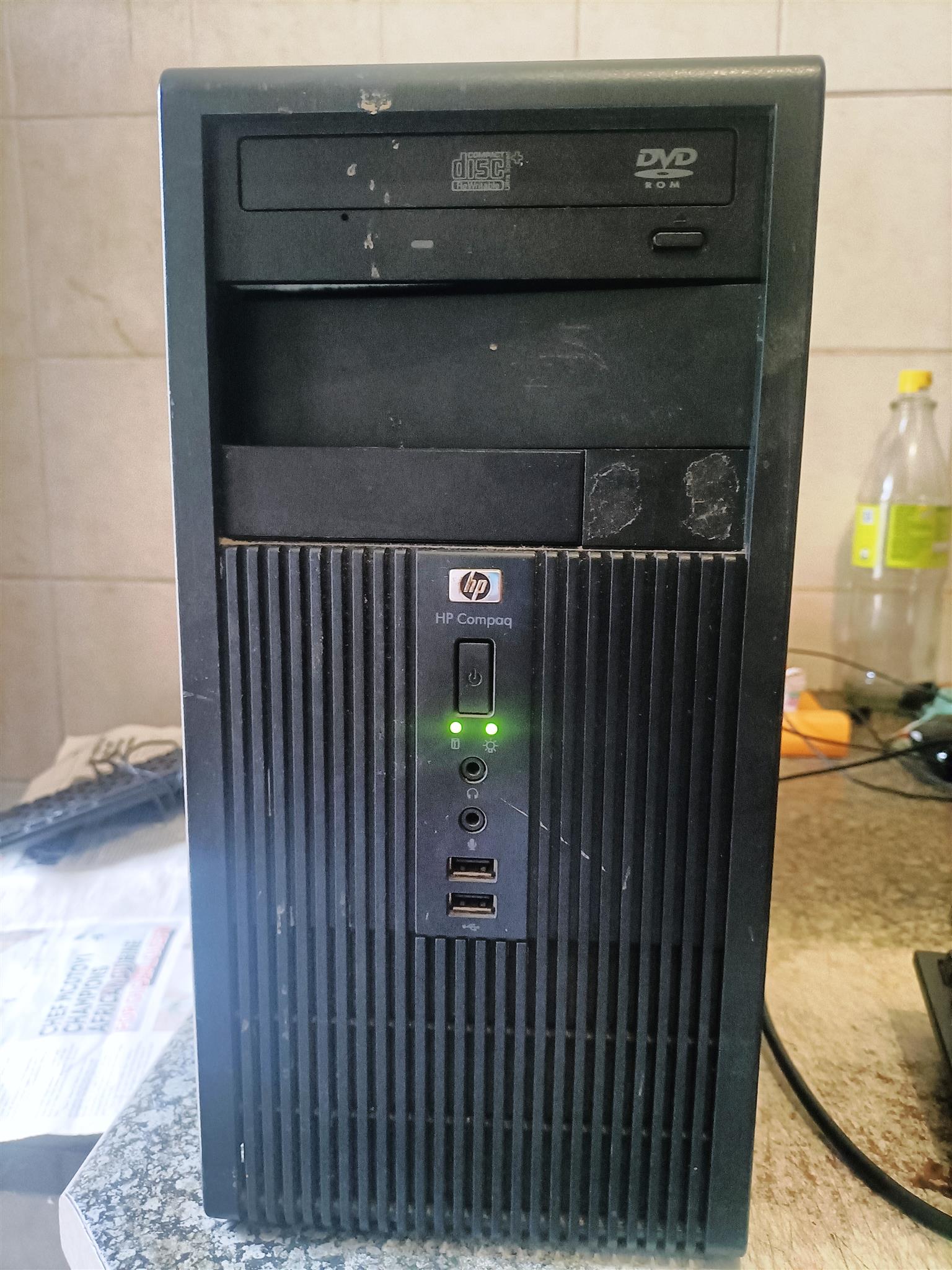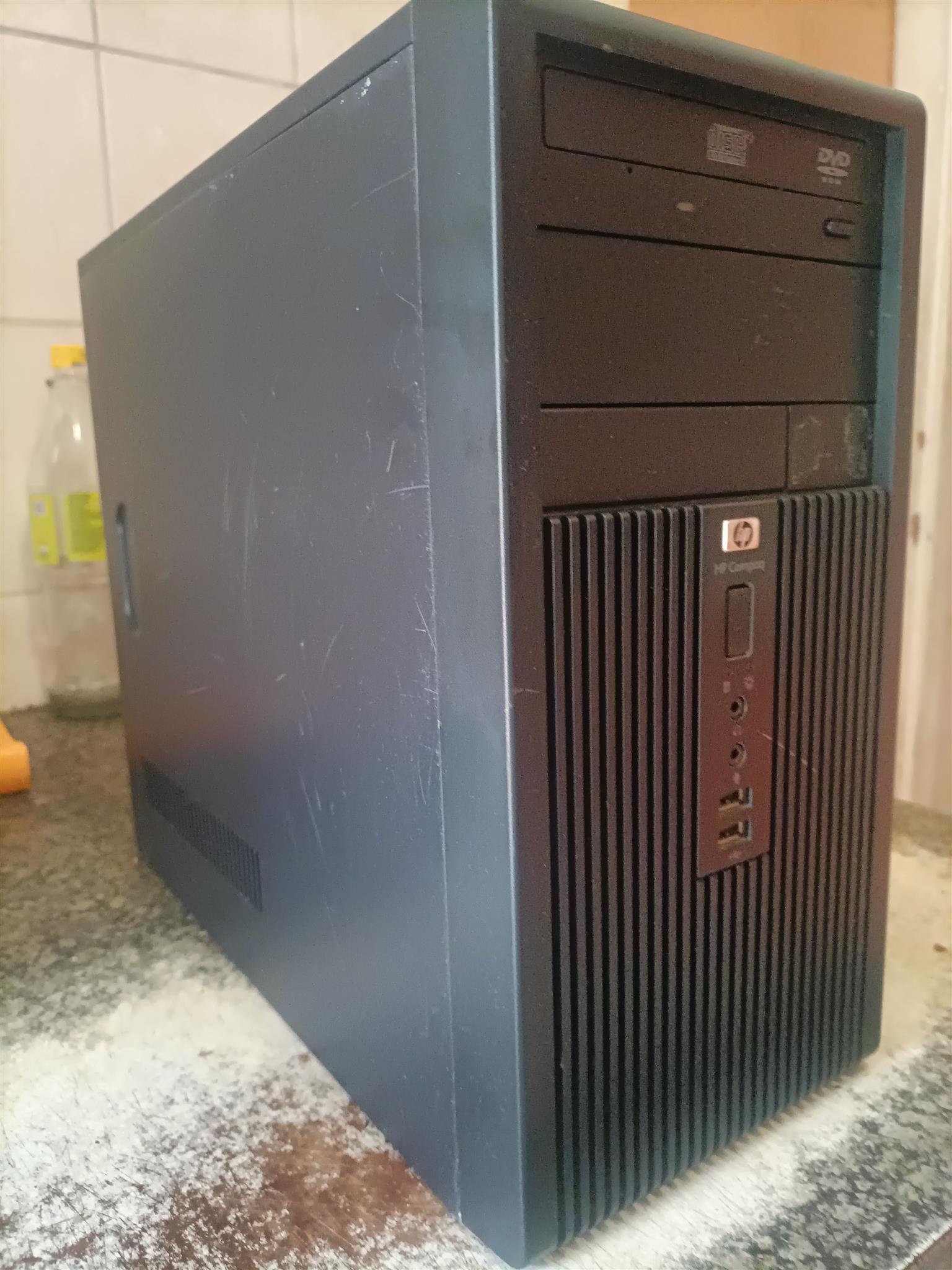 Hp Compaq desktop tower, (Processor : Intel Pentium 4 - 3Ghz, RAM : 512 MB, OS : Win 7). Comes with: keyboard + Mouse + Power Cord.