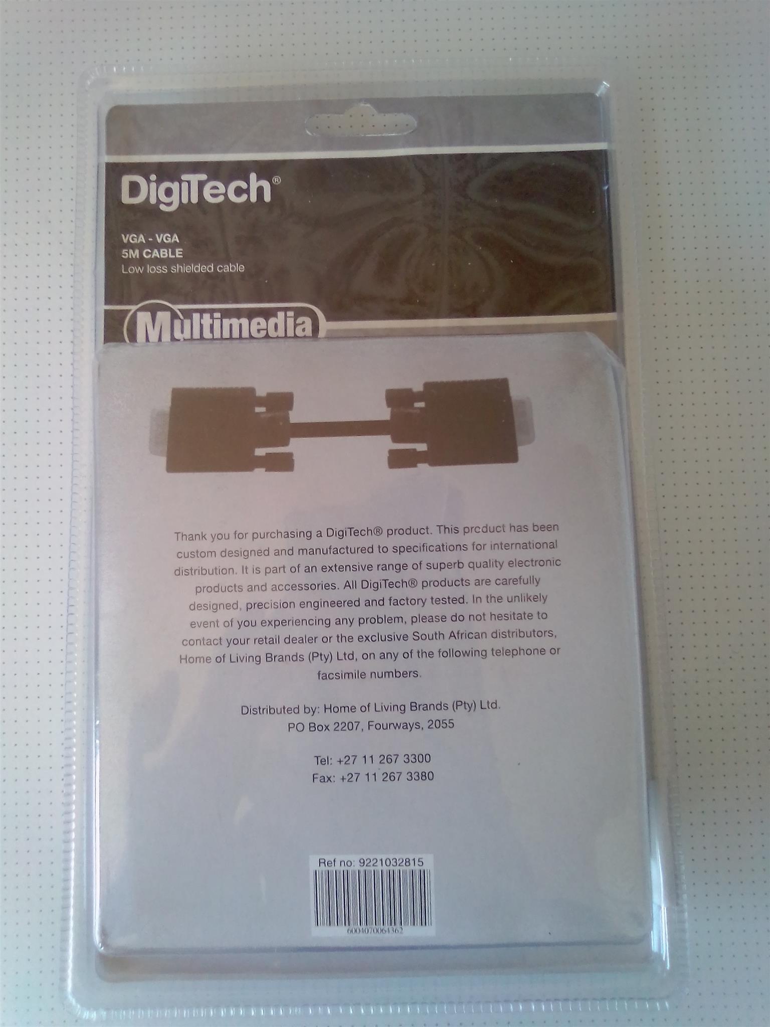 VGA to VGA 5m Multimedia DigiTech Cable. Brand new. Sealed in a box.