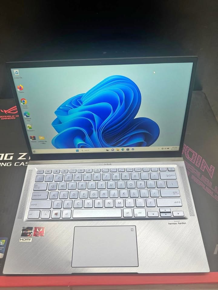 Asus ZenBook 14 UM431DA AMD Ryzen 5 3500U up to 3.7GHz Processor with AMD max boost clock Technology, 4MB Cache, 4x Cores, 8x Threads / 8GB DDR4 RAM / 512 Ultra-Fast NVMe SSD / 14" 16:9 FHD (1920x1080) Anti-Glare Thin-Bezel Nano Edge Wide View Display / Integrated AMD Radeon Vega 8 Graphics, DirectX 12 Support / Dual-band 802.11ac Wireless LAN / Bluetooth 5.0 / SD card reader / HD Web Camera / 1x USB 3.1 Type-A / 1x USB 2.0 / 1x USB 3.1 Type-C / 1x HDMI / Windows 11 Pro (64bit) / 1x Headphone-out & Audio-in Combo Jack / Harmon/Kardon Audio Technology /1.59kg Ultra-Light Weight / Illuminated Chiclet Keyboard .