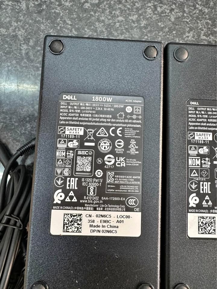 Condition Secondhand Location South Africa Voltage 19.5V Compatible Brand Dell Power 180W Product code Dell 180W (001) Bob Shop ID Dell Original AC Adapter | 19.5V---9.23A, 180W, 100-240V-1.5A 50-60Hz (Big Pin) The charger is in excellent condition, clean like new, no wear, no cracks, no twisting or deep bends on the cable.