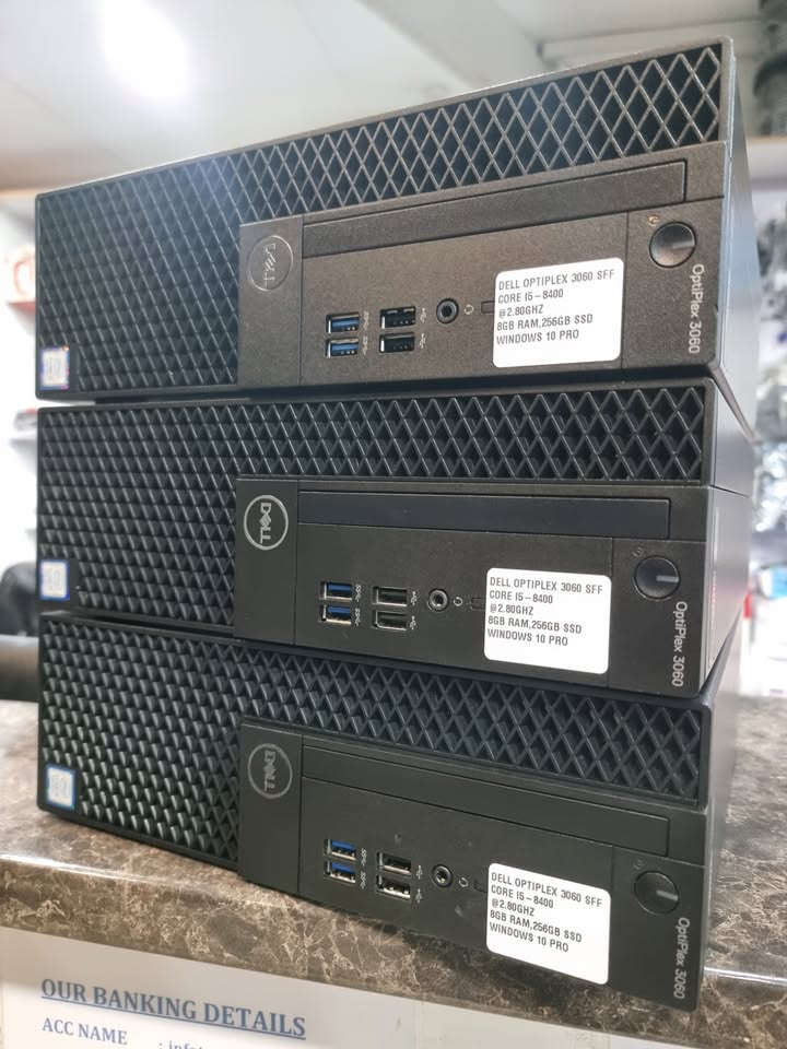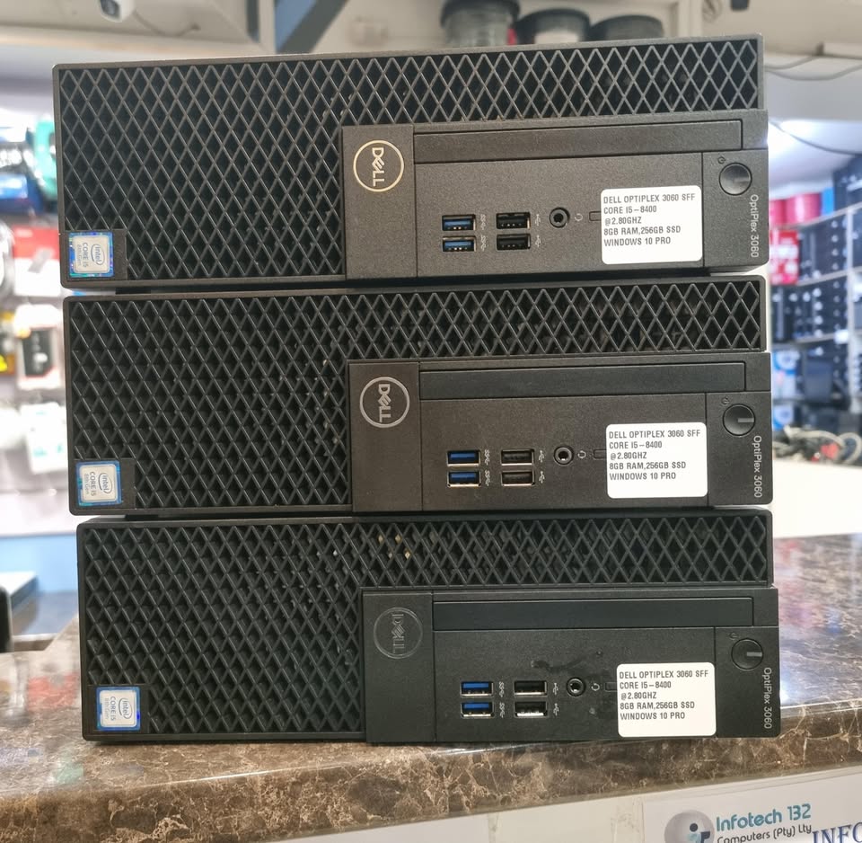 Dell OptiPlex 3060 SFF Core i5 8th Gen 8GB RAM 256GB SSD CERTIFIED REFURBISHED Refurbished (Pre-Owned) Dell OptiPlex 3060 Core i5 SFF Desktop PC 8th Generation Intel Core i5-8400 2.8GHz 9M Cache, up to 4.00 GHz 8GB DDR4 2666MHz RAM 256GB SSD M.2 Intel UHD Graphics 630 Windows 10 Pro 64-Bit Gigabit Ethernet Connectivity, ports: 4 x External USB 3.1 Type-A (2 front/2 rear), 4 x External USB 2.0 Type-A (2 front/2 rear), 1 x RJ-45, 1 x DisplayPort 1.2, 1 x HDMI 1.4, 1 x UAJ, 1 x Line-out, interested clients can call me on 0603038546view more/0645191482view more or visit our main Branch at 126 Commissioner street Marshall Town, 7am to 5pm Mondays to Saturdays. our items covers a 6 months warranty from purchase date. Delivery can be made via the courier guy once purchase has been made. Your sales person Thandiwe