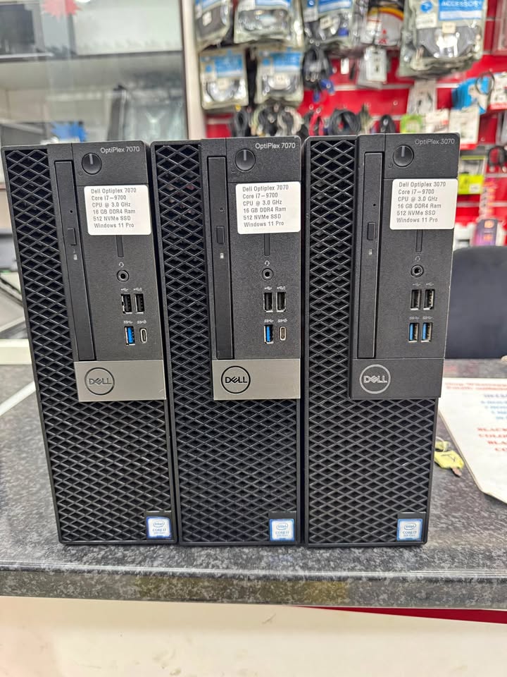 Description The Dell OptiPlex 7070 SFF is a compact and powerful desktop designed for business and home use. Powered by a 9th Gen Intel Core i7-9700 processor, 16GB DDR4 RAM, and a 512GB SSD, this system delivers robust performance for multitasking and productivity in a space-saving form factor. Key Features Performance: Intel Core i7-9700 (8 cores, 3.0GHz up to 4.7GHz) for powerful multitasking. Memory & Storage: 16GB DDR4 RAM and 512GB SSD for quick boot times and ample storage. Design: Small Form Factor (SFF) with dimensions Width: 9.3 cm; Depth: 29.2 cm; Height: 29.0 cm, weighing approx. 5.26 kg, ideal for compact workspaces. Condition: Certified Pre-Owned, refurbished to ISO 9001 standards, like-new. Connectivity: Front: 2 × USB 2.0, 1 × USB 3.1 Gen 1, 1 × USB-C, Audio Jack; Back: 2 × USB 3.1 Gen 1, 2 × USB 2.0, 2 × DisplayPort, 1 × RJ-45 Ethernet, Audio, Serial Port. Product Specifications Model: Dell OptiPlex 7070 SFF Processor: Intel Core i7-9700 (9th Gen, 8 cores, 8 threads, 3.0GHz up to 4.7GHz, 12MB cache) Memory: 16GB DDR4 RAM (2666 MHz) Storage: 512GB SSD Graphics: Integrated Intel UHD Graphics 630 Operating System: Windows 11 Pro (64-bit, activated) Dimensions: Width: 9.3 cm; Depth: 29.2 cm; Height: 29.0 cm Weight: Approx. 5.26 kg Ports & Connectivity: Front: 2 × USB 2.0, 1 × USB 3.1 Gen 1, 1 × USB-C, 1 × Audio Jack (headphone/microphone combo) Back: 2 × USB 3.1 Gen 1, 2 × USB 2.0, 2 × DisplayPort 1.2, 1 × RJ-45 Ethernet, 1 × Audio Line-Out, 1 × Serial Port Why Choose Certified Pre-Owned? Like-New Condition: Refurbished under ISO 9001-certified quality standards to pristine condition. Reliability: Tested via a 60-point quality control process. Eco-Friendly: Reduces e-waste by extending the life of high-quality tech. Value: Premium performance at a fraction of the cost. Please Note The product may not arrive in its original packaging. Minor signs of wear and tear may be present on the device. What's in the box 1 × Certified Pre-Owned Dell OptiPlex 7070 SFF Desktop 1 × Power Cable