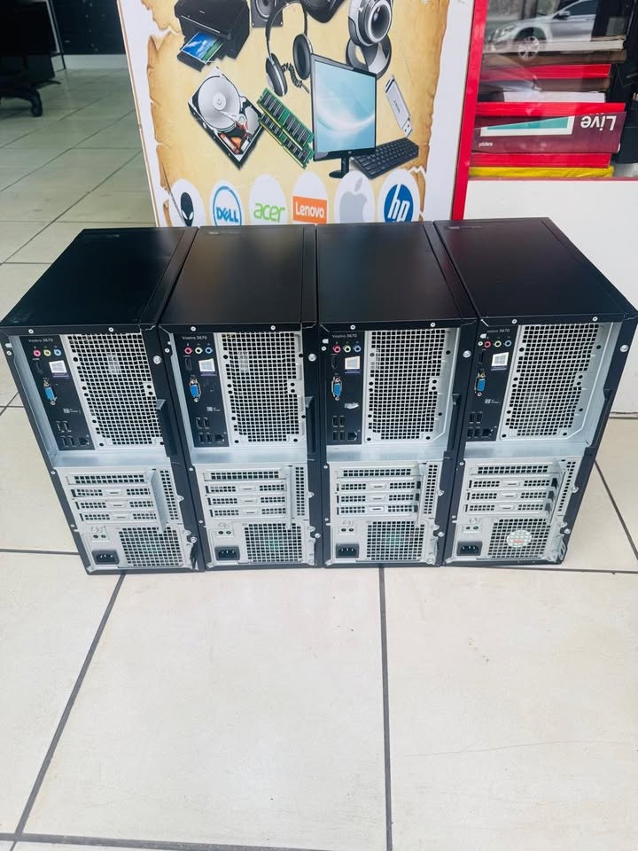 Refurbished Dell Vostro 3670 Mini Tower Desktop PC 8th Generation intel Core i5-8400 - 6 Cores - 6 Threads up to 4.0Ghz 8GB DDR4 RAM (32GB Max) 256GB SSD DVD-RW Drive Intel UHD Graphics 630 Windows 10 Pro 64-Bit High-Definition Audio Connectivity: Front: 2 x USB 3.1 Gen 1 Type-A, 1 x Audio Combo Jack, Rear: 4 x USB 2.0, 1 x VGA, 1 x HDMI out, 1 x Network Port, 1 x Line in/out, 1 x Microphone Port, SD Card Reader