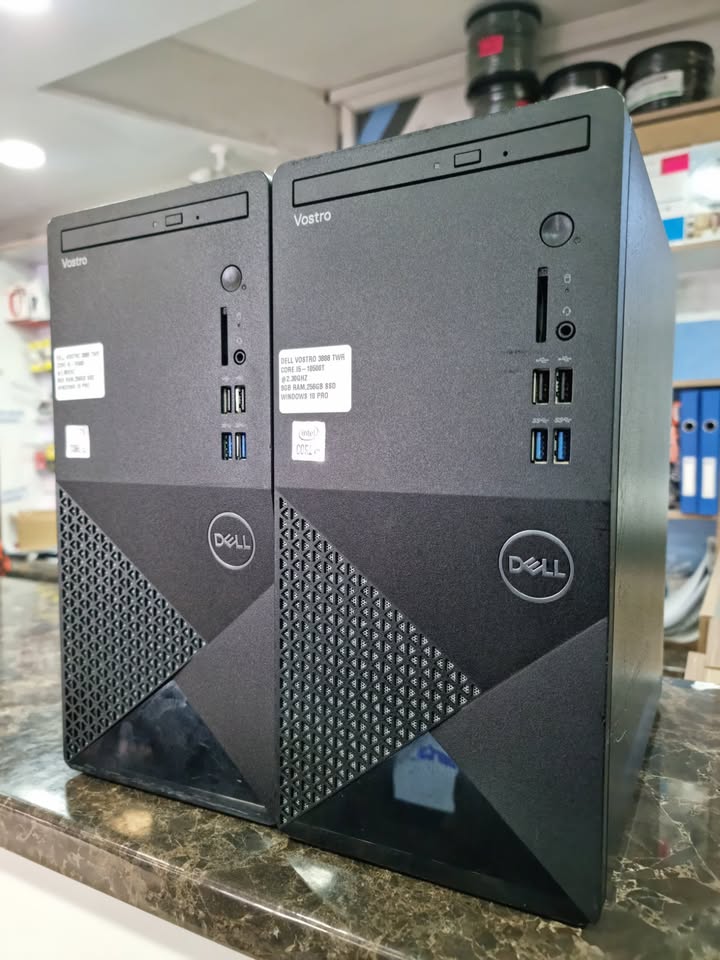 DELL VOSTRO 3888 CORE I5-10TH GEN ,8GB RAM 256GB SSD CERTIFIED REFURBISHED Product Family: Dell Vostro 3888 Processor frequency: 2.9 GHz Processor family: 10th gen Intel® Core™ i5 Processor model: i5-10400 Internal memory: 8 GB Internal memory type: DDR4-SDRAM Memory clock speed: 2666 MHz Total storage capacity: 256 GB Storage media: SSD Optical drive type: DVD-RW On-board graphics adapter model: Intel® UHD Graphics 630 Operating system installed: Windows 10 Pro Operating system architecture: 64-bit Power supply: 260 W Chassis type: Mini Tower Product type: PC Available @ GLOBAL TECHNOLOGIES with a variety of desktops to choose from, you can visit our branch in CBD at 123 Commissioner street, Marshall Town or you can app us on 064 5191482view more also call us on 064 519 1482view more our items covers a 6 months warranty from purchase date. Delivery can be made via the courier guy once purchase has been made. Your sales person Thandiwe