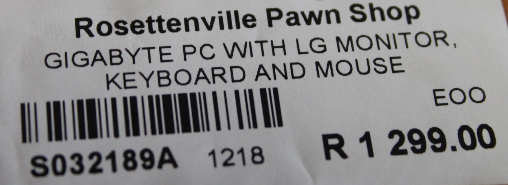 Gigabyte pc with Lg monitor, keyboard and mouse available at Rosettenville pawn shop99 Main streetRosettenville0600685209