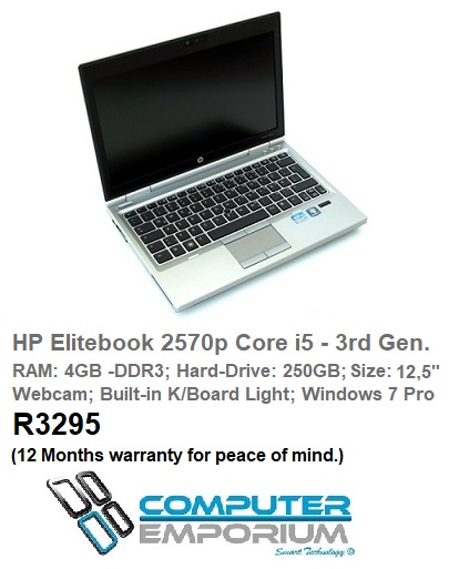 HP Elitebook 2570p Core i5 - 3rd Generation / 4GB / 250GB / Webcam / WIndows 7 Professional (50 UNITS AVAILABLE)