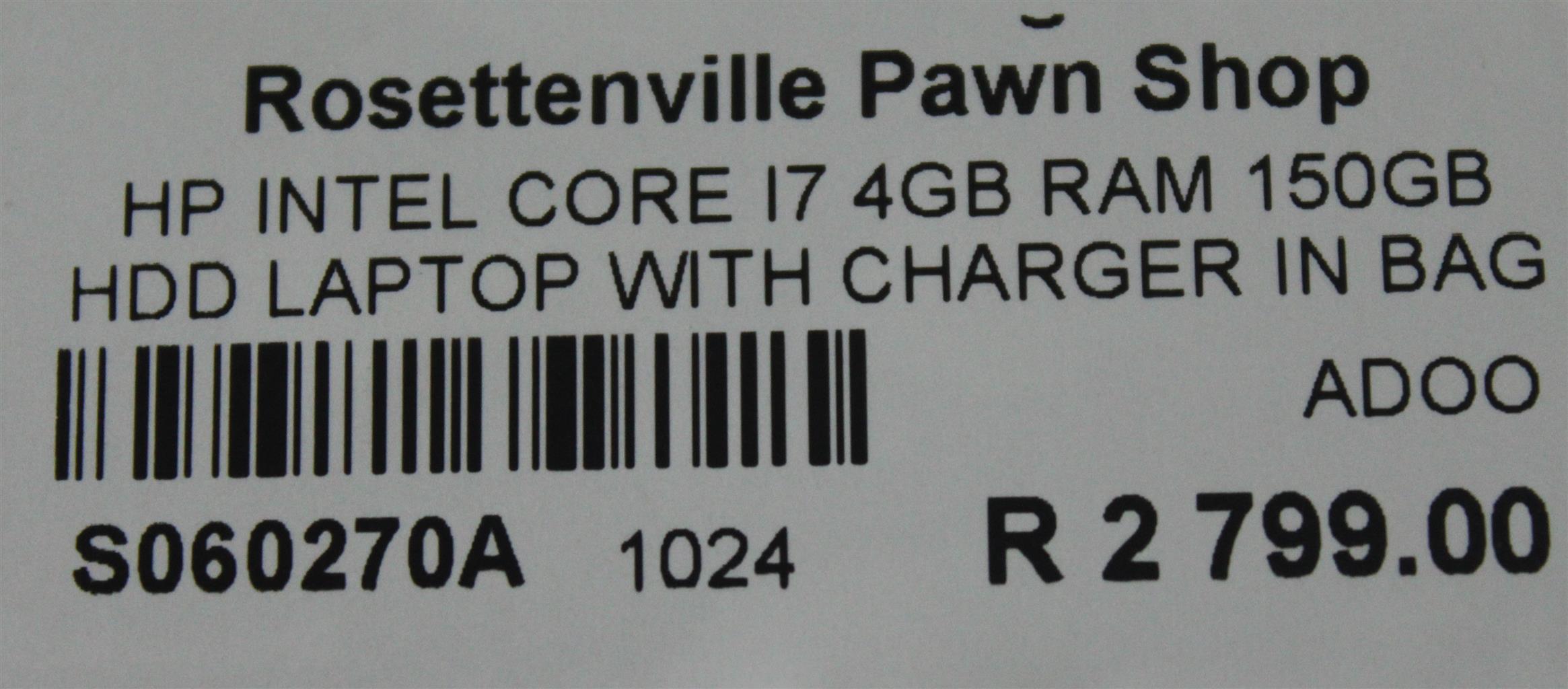 HP INTEL CORE I7 4GB RAM 150GB HDD LAPTOP WITH CHARGER IN BAG