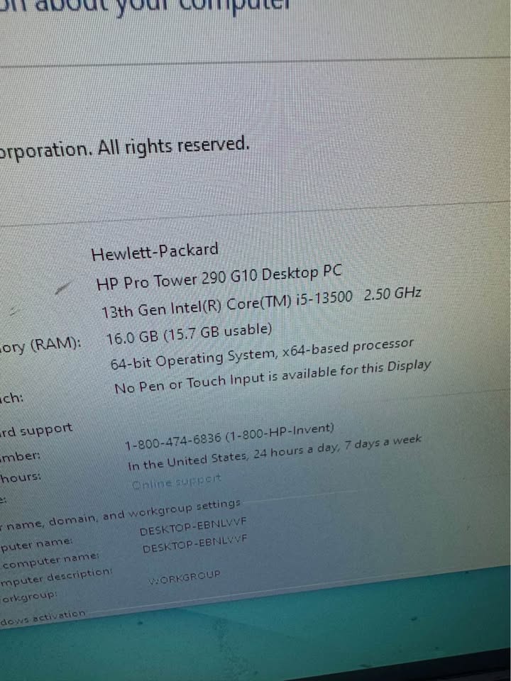 Product description HP Pro 290 G10 i5-13500/16 GB/ 512 GB SSD desktop pc Specifications: Operating system: - Windows 11 Pro Processor family: - 13th Gen Intel® Core™ i5 Processor Processor: - Intel® Core™ i5-13500 (up to 4.8 GHz with Intel® Turbo Boost Technology, 24 MB L3 cache, 14 cores, 20 threads) Chipset: - Intel® H670 Graphics card: - Integrated, Intel® UHD Graphics 770 Memory: - 16 GB DDR4 (3200MHz) RAM (2 x 8GB) Memory slots: - 2 DIMM Internal Storage: - 256GB PCIe® NVMe™ M.2 SSD Minimum dimensions (W x D x H): - 15.5 x 30.3 x 33.7 cm Weight: - 4.7kg