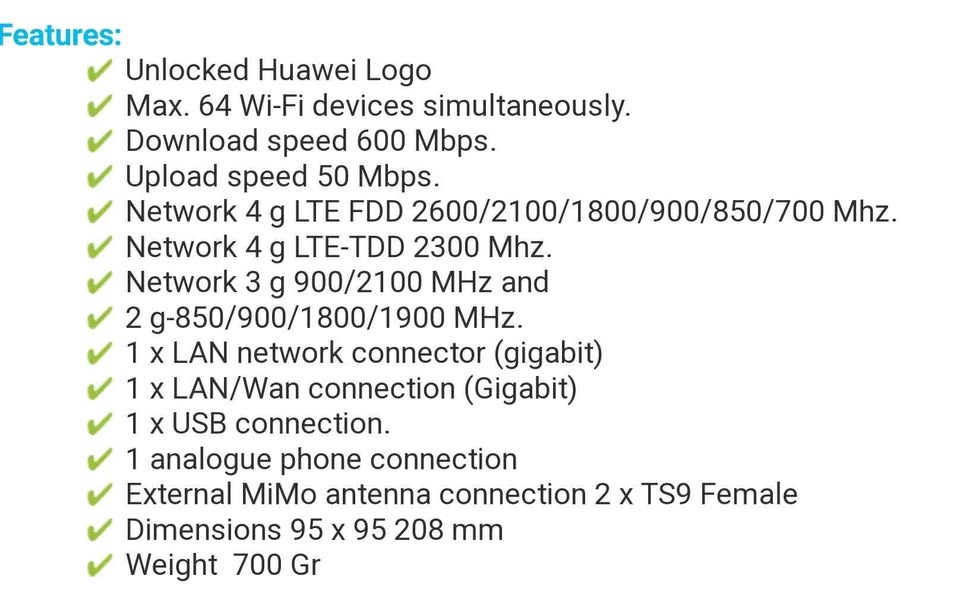 The Huawei 4G LTE hotspot router can connect up to 64 devices with a speed of up to 1300 mbps.