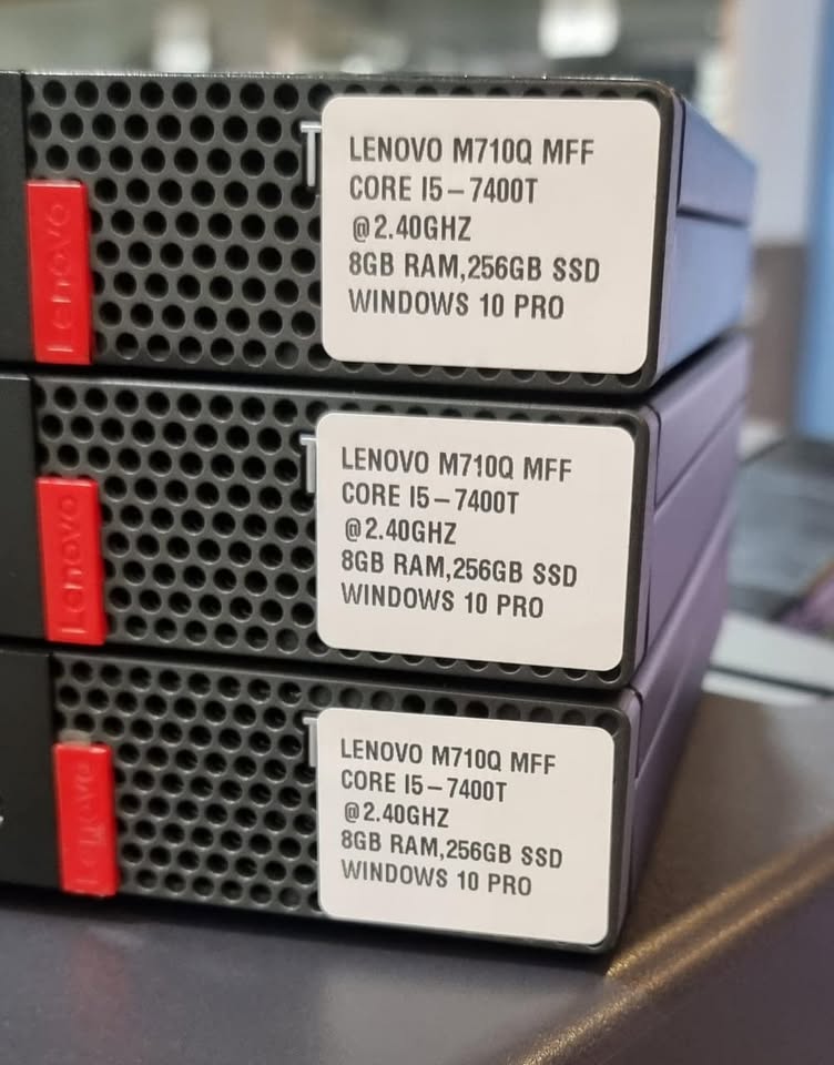 Lenovo ThinkCentre M720Q mff , core i5 8th generation, 8gb ram 256gb ssd Intel Core i5-8500T - 8th Gen Six-Core 2.10GHz 9M Cache, Max Turbo Frequency up to 3.50 GHz Intel Turbo Boost 2.0 Technology 8GB DDR4-2133MHz Ram 240GB Solid State Drive Ultra Small Form Factor (USFF) Intel UHD Graphics 630 High Definition (HD) Audio, Realtek ALC233VB2 codec Trusted Platform Module (TPM) Available @ INFOTECH COMPUTERS with a variety of desktops to choose from, you can visit our main branch in CBD at 113 Main street, Marshall Town shop N03 ground floor MATHOMO MALL Opposite Gym Company or you can app us or call us on 0603038546view more/0113540017view more our items covers a 6 months warranty from purchase date. Delivery can be made via the courier guy once purchase has been made. Your sales person Thandiwe