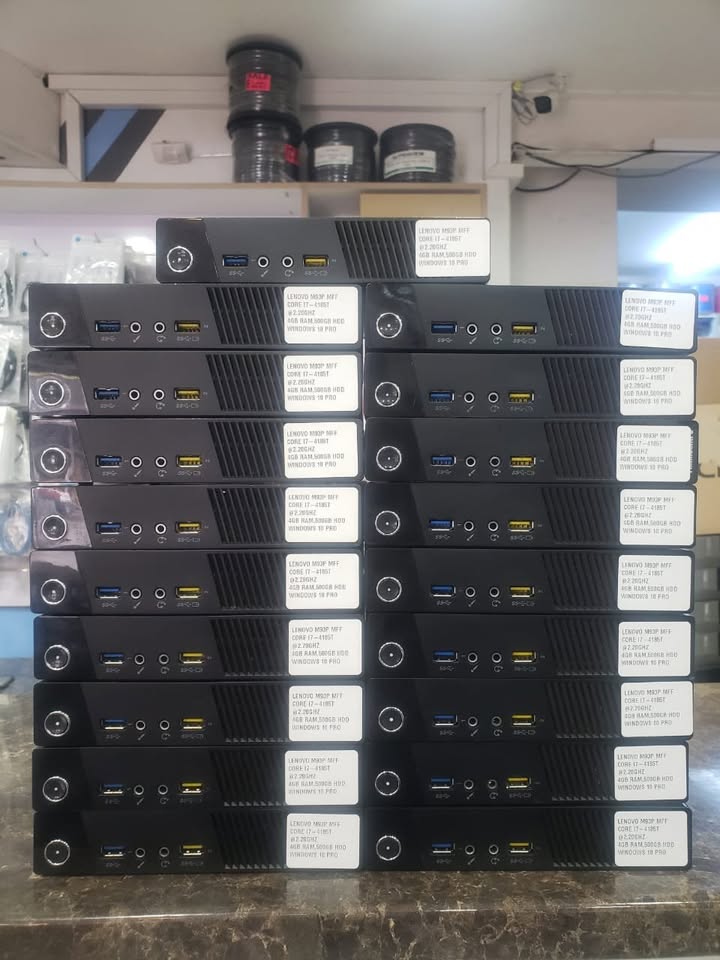 LENOVO THINKCENTRE M93P CORE i7 4785T ,4GB RAM,500GB HDD MFF(CERTIFIED REFURBISHED) Specifications: Processor: Intel Core i7-4th Gen (4-Core, 8MB Cache, 2.20GHz up to 3.20GHz) Processor socket: LGA 1150 (Socket H3) Memory: 4GB DDR3 RAM Maximum internal memory:16 GB Storage: 500GB HDD Graphics Card: Intel HD Graphics 4600 Operating System: Windows 10 Professional Ethernet: Gigabit Form Factor: Mini PC Power Supply: 65W Dimensions: Height: 3.6 cm Depth: 17.8 cm Length: 18.2cm Weight: 1.18KG Ports: Front 2 x USB 3.2 Gen 1 1 x 3.5mm microphone Rear 3 x USB 3.2 Gen 1 (3.1 Gen 1) 1 x DisplayPort 1 x LAN RJ-45 (Gigabit Ethernet) 1 x VGA Available @ INFOTECH COMPUTERS with a variety of desktops to choose from, you can visit our main branch in CBD at 113 Main street, Marshall Town shop N03 ground floor MATHOMO MALL Opposite Gym Company or you can app us or call us on 0603038546view more/0113540017view more our items covers a 6 months warranty from purchase date. Delivery can be made via the courier guy once purchase has been made. Your sales person Thandiwe