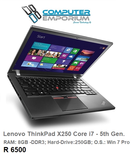 Lenovo ThinkPad X250 Core i7 -5th Generation (5600U) / 8GB / 250GB SSD/ Windows 7 Professional. More details: