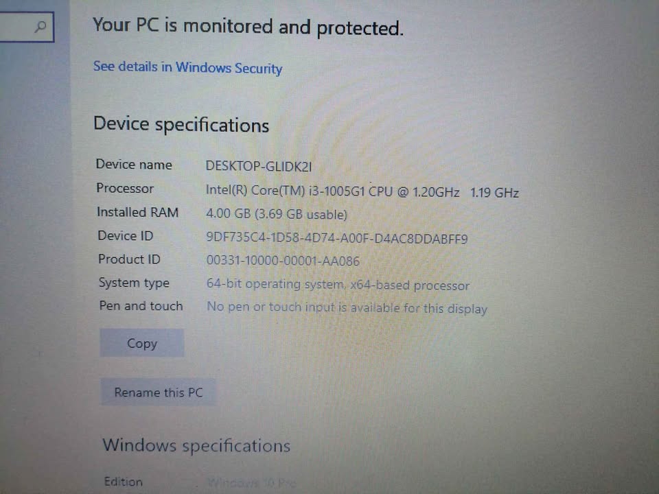 MECER NOTEBOOK (500GB) INTEL CORE I3- 1005G1 CPU @ 1.20 GHZ 4GB RAM HDD
