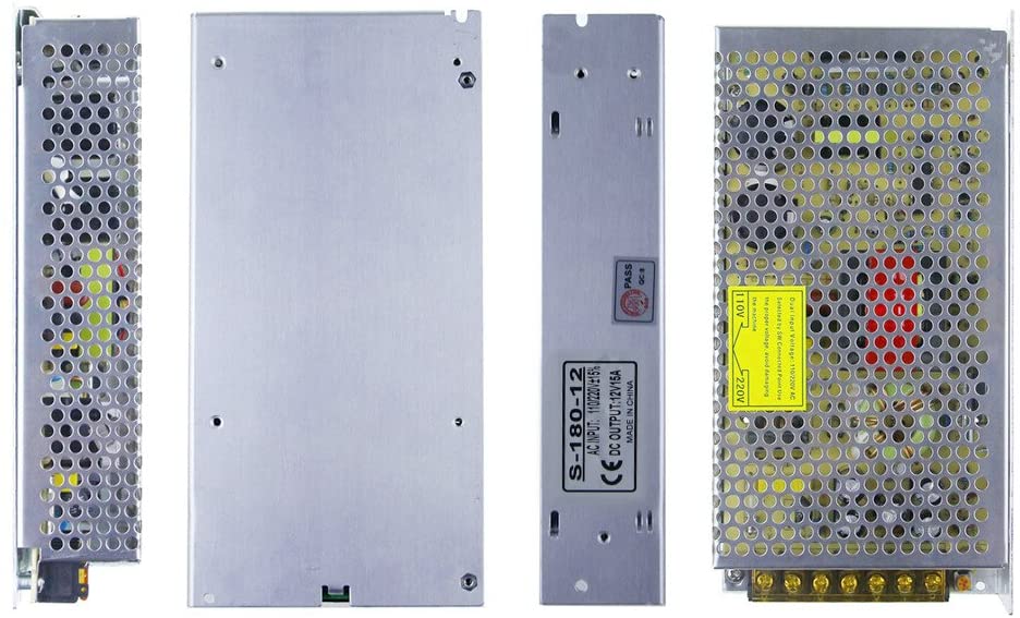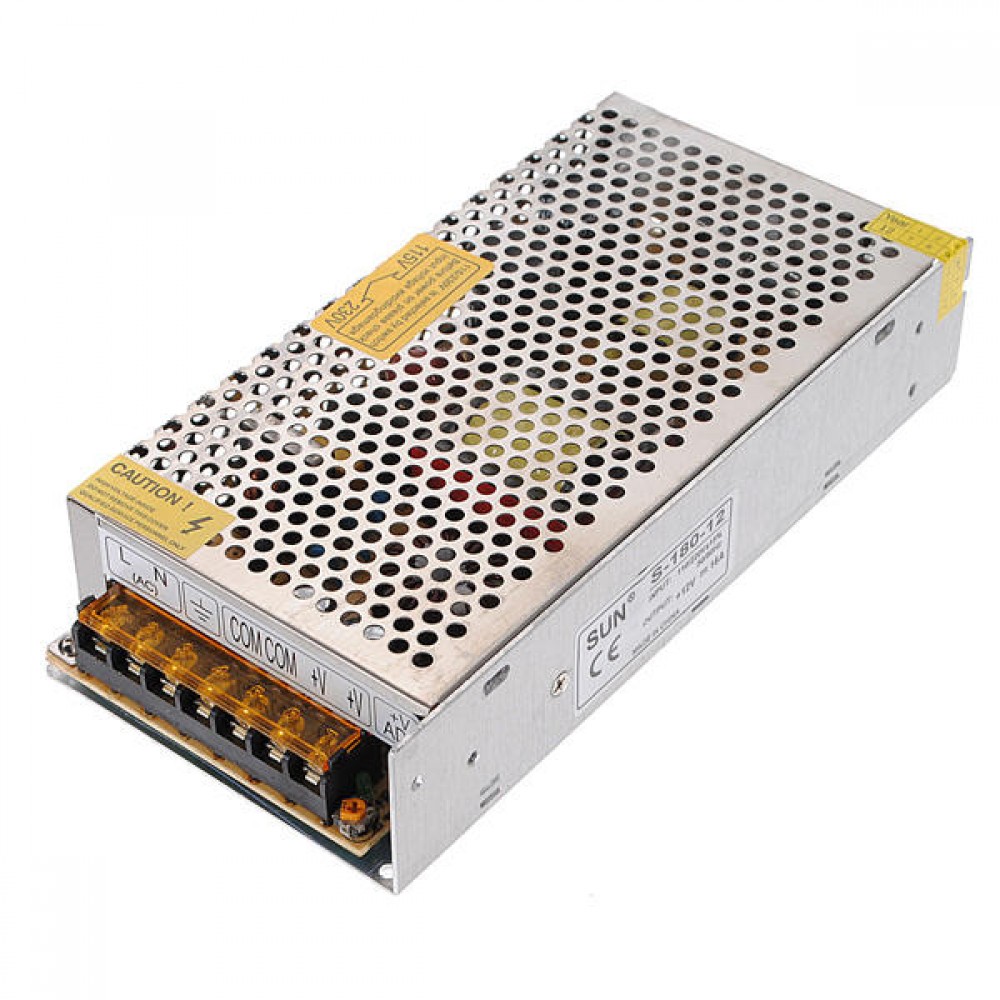 Ventilated Metal Casing 15A 12V 180W AC to DC Transformers, Regulated Switching Power Supplies Universal Adapter.